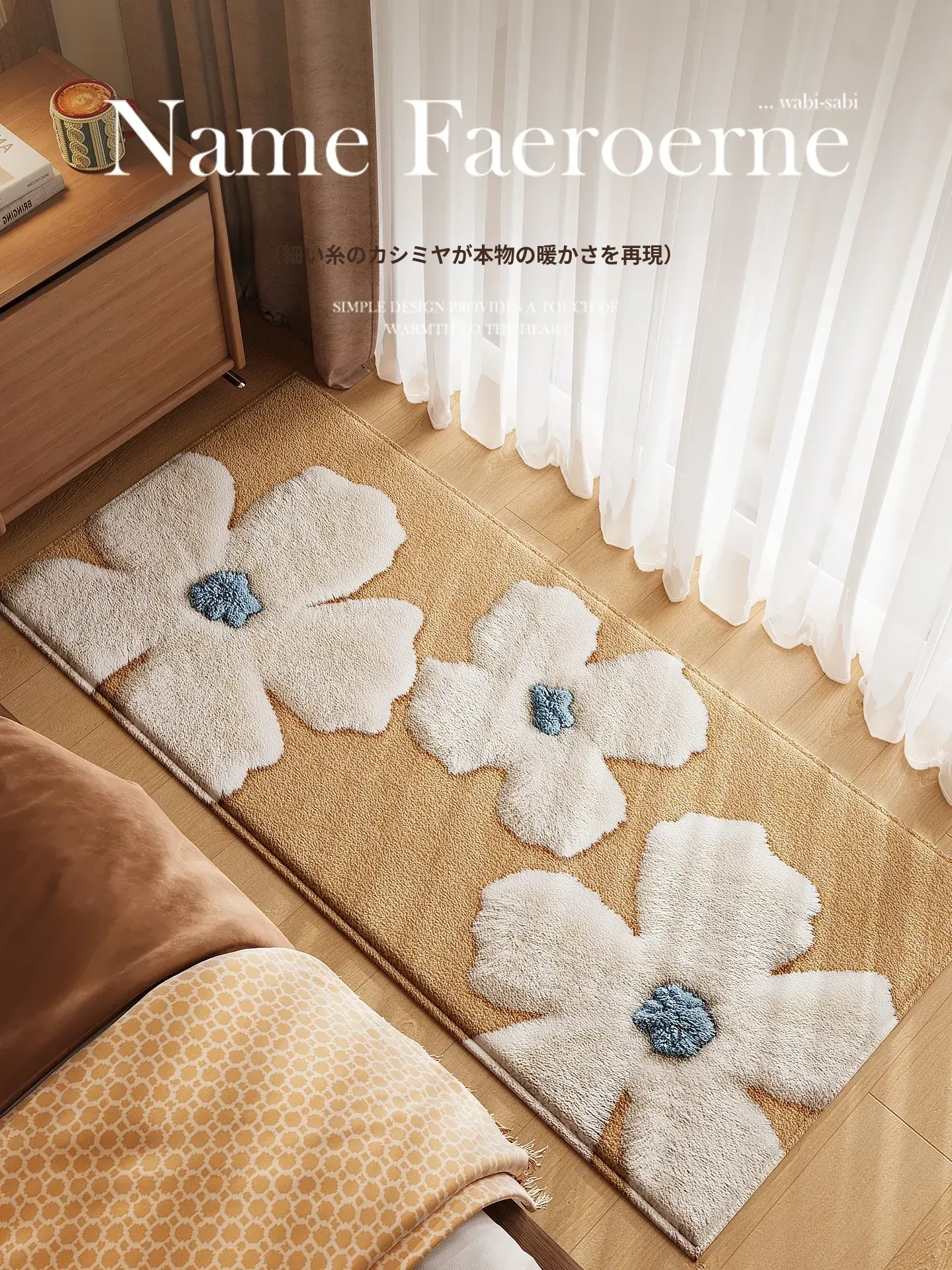 新作!厚手で高級感溢れるベッドサイドマット、防滑・防水機能付き。お手入れ簡単な家庭用ラグで、快適な寝室空間を演出します!
