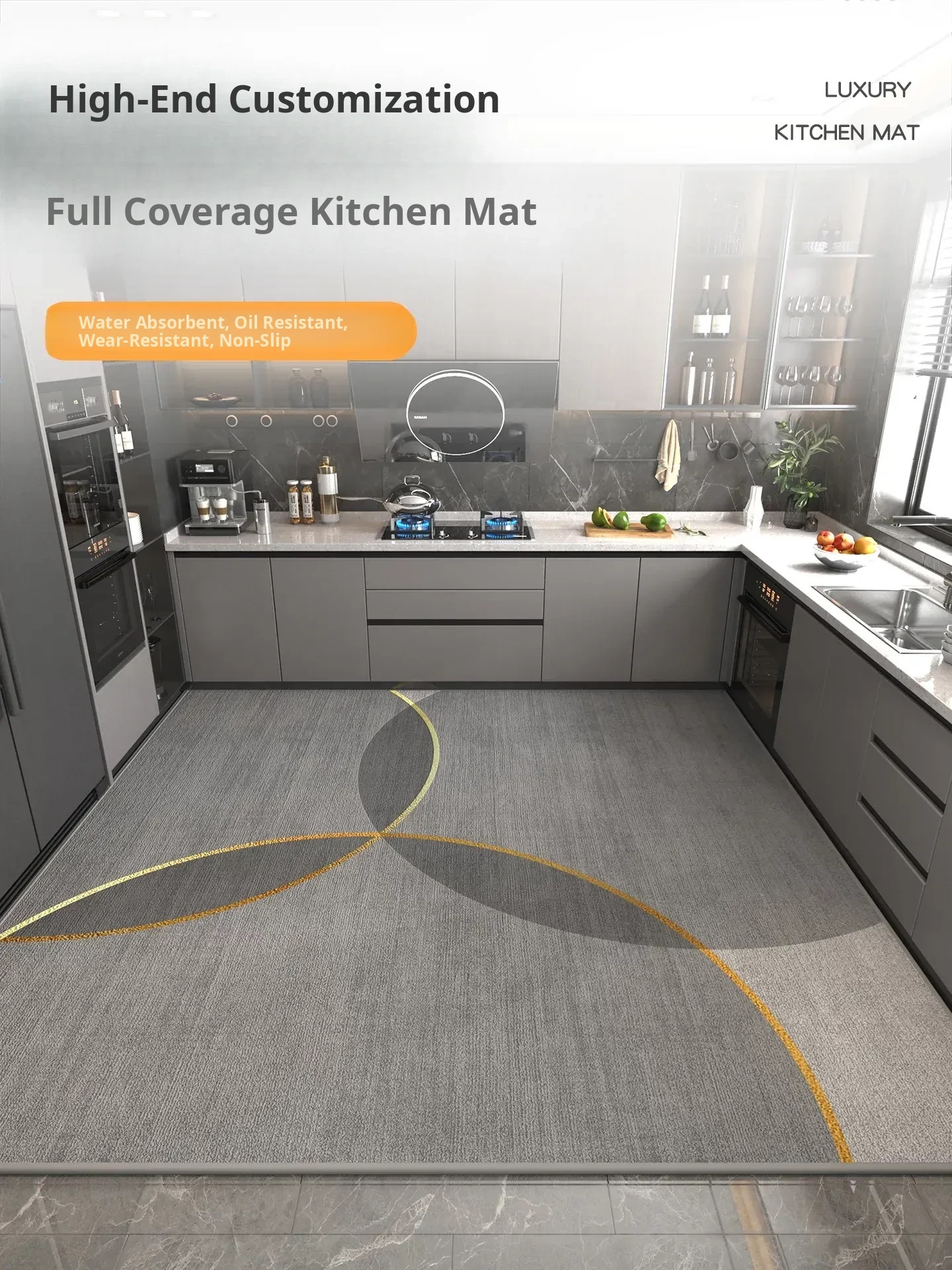 Oil-Resistant Non-Slip Kitchen Mat - Stain-Resistant, Absorbent, and Washable Waterproof Door Mat for Full Coverage, Perfect for Busy Kitchens!