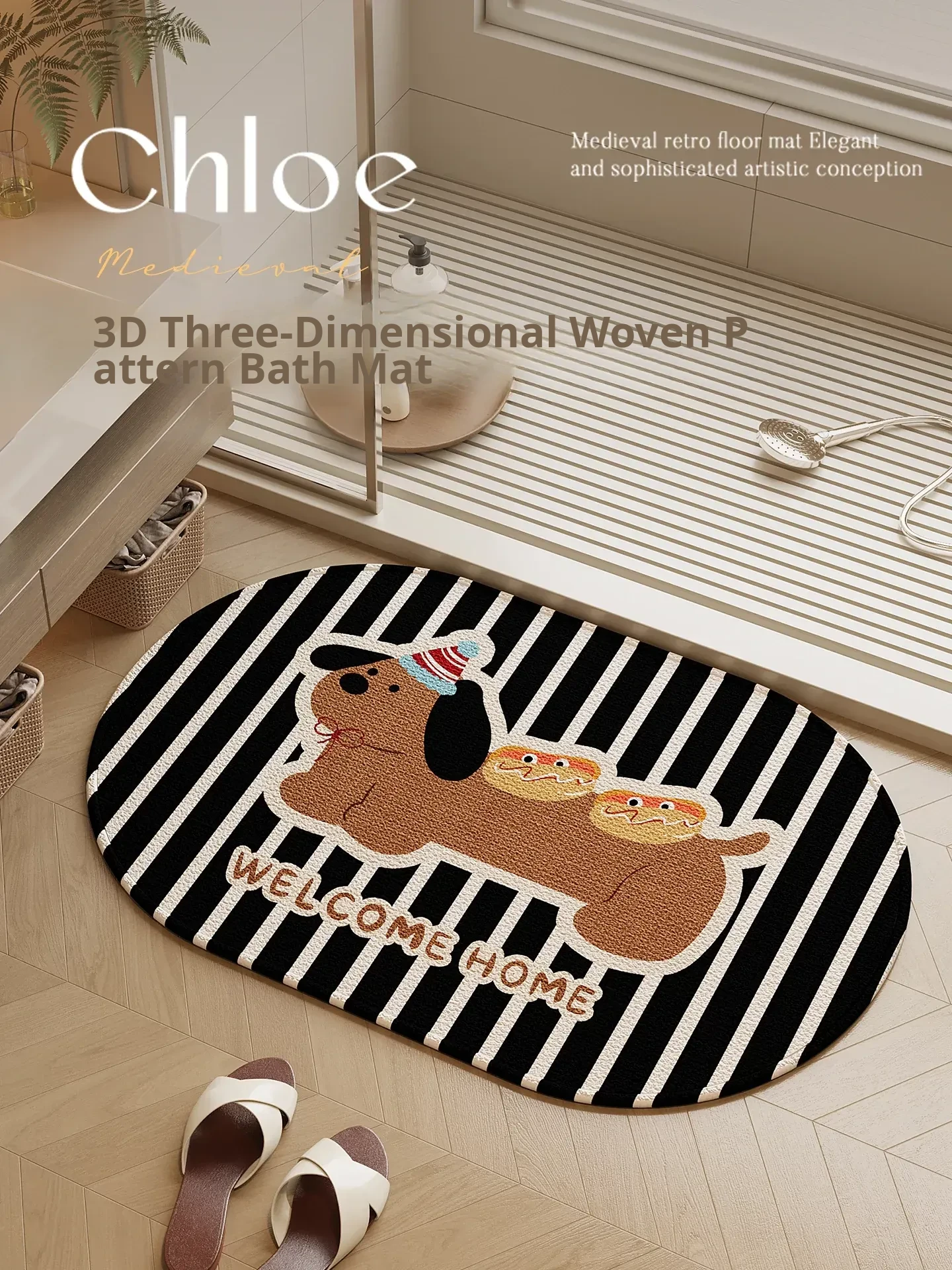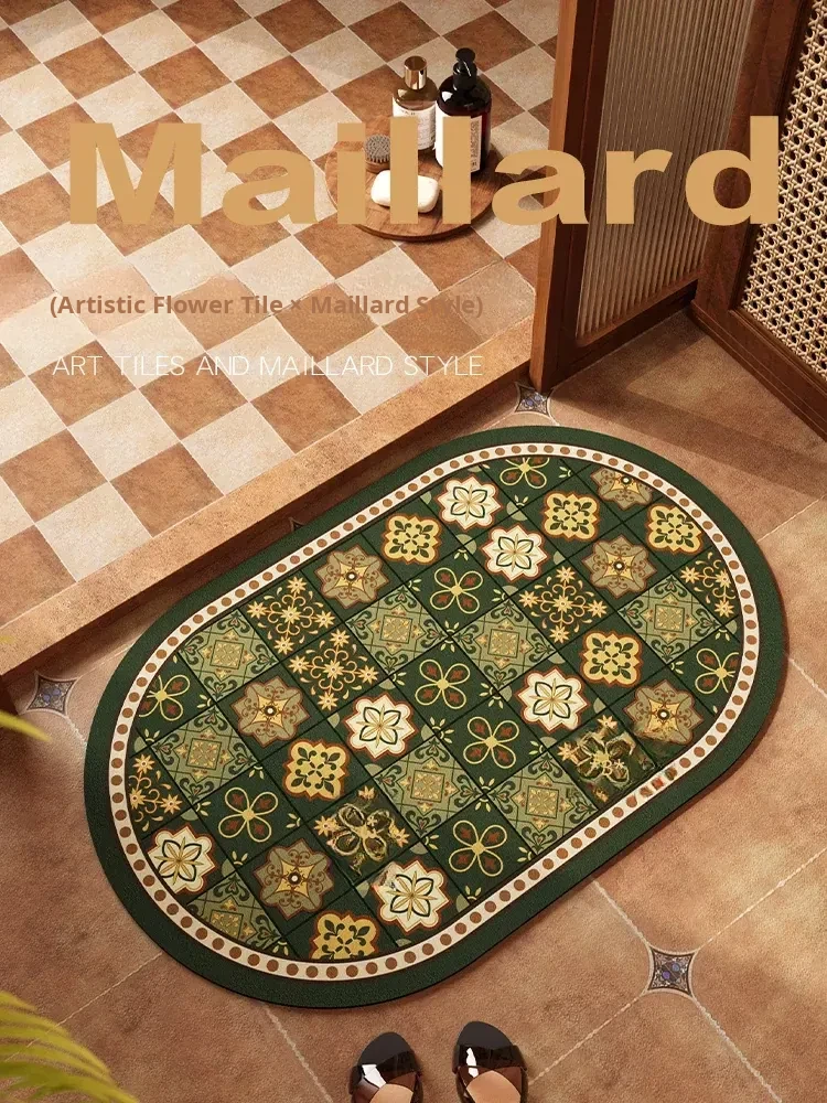 Vintage-Inspired Absorbent Bathroom Mat - Retro Non-Slip Floor Rug for Luxurious Restrooms - New Melard Collection