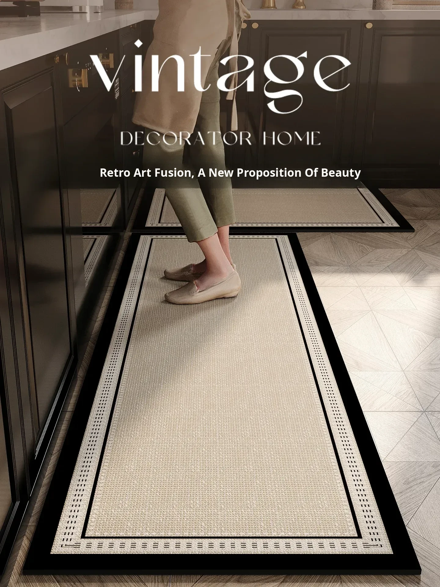 Premium Retro Kitchen Mat - Non-Slip, Oil-Resistant, Easy-Clean, Waterproof, Absorbent Floor Rug. Perfect for Keeping Your Kitchen Stylish and Spotless!