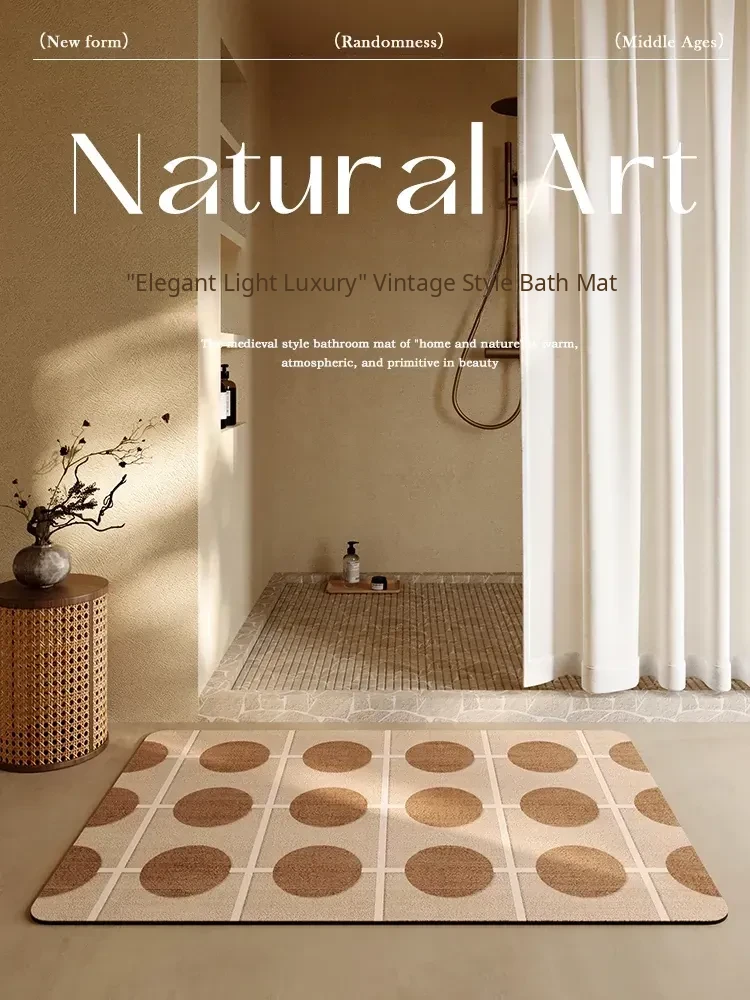 Quick-Dry Absorbent Bathroom Mat - Non-Slip Door Carpet for Toilet and Shower Room - Vintage Diatomite Design for Ultimate Comfort and Safety
