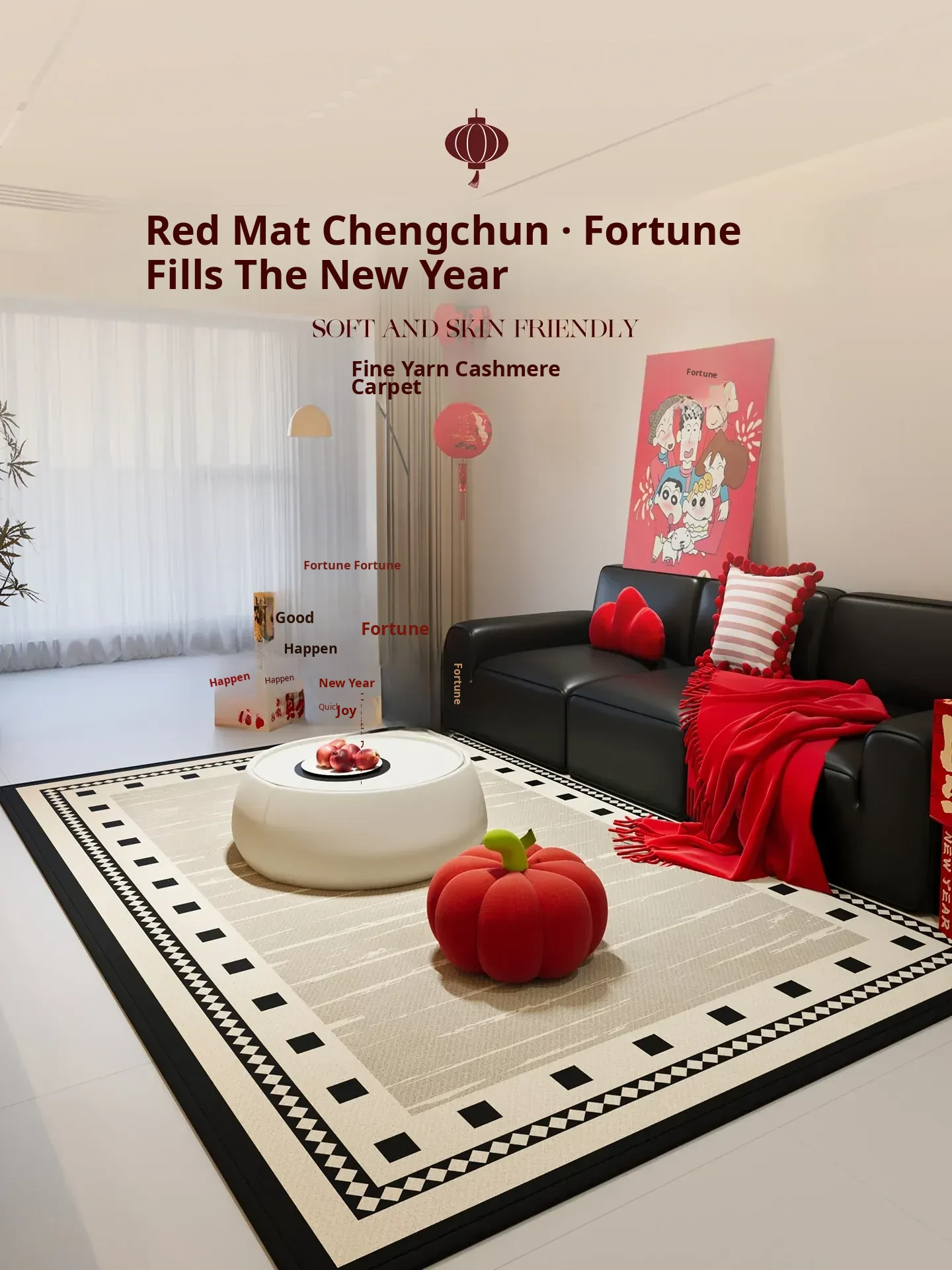 2026 New High-End Waterproof Black and White Sofa Mat - Luxurious Minimalist Carpet for Living Room, Thick and Easy-Clean Design