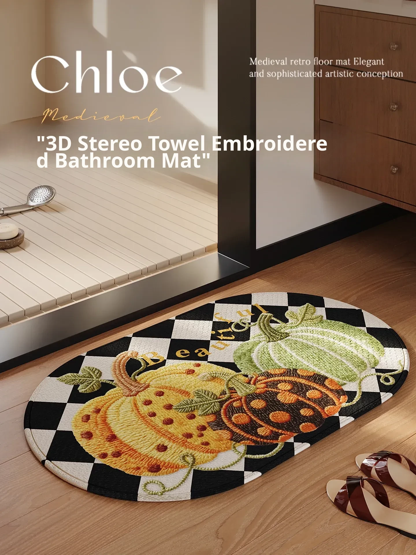 Thickened Non-Slip Pumpkin Weave Bathroom Mat - Highly Absorbent, Stain-Resistant Shower Floor Rug for Hygiene and Safety in Your Bathroom and Toilet Entrance