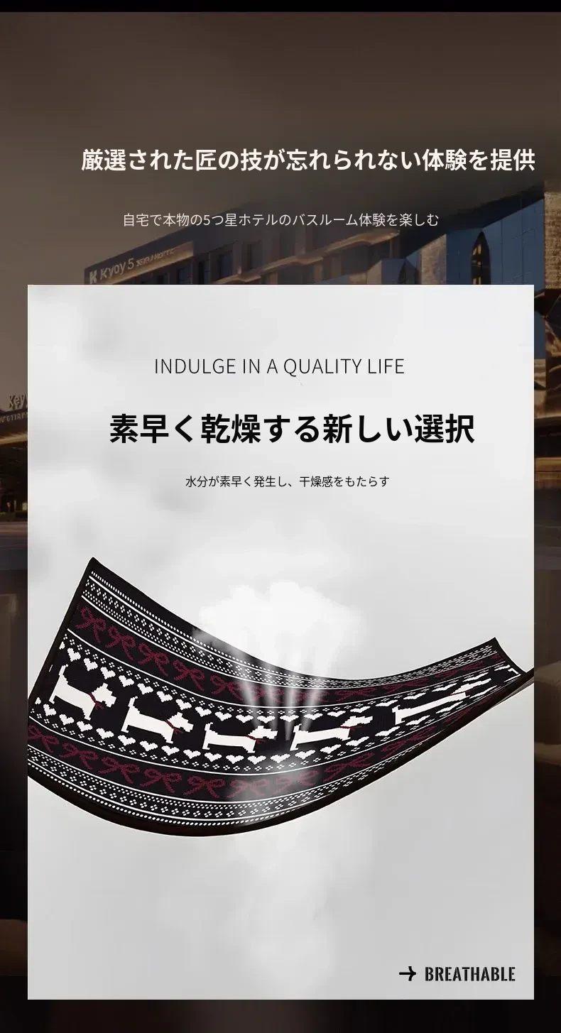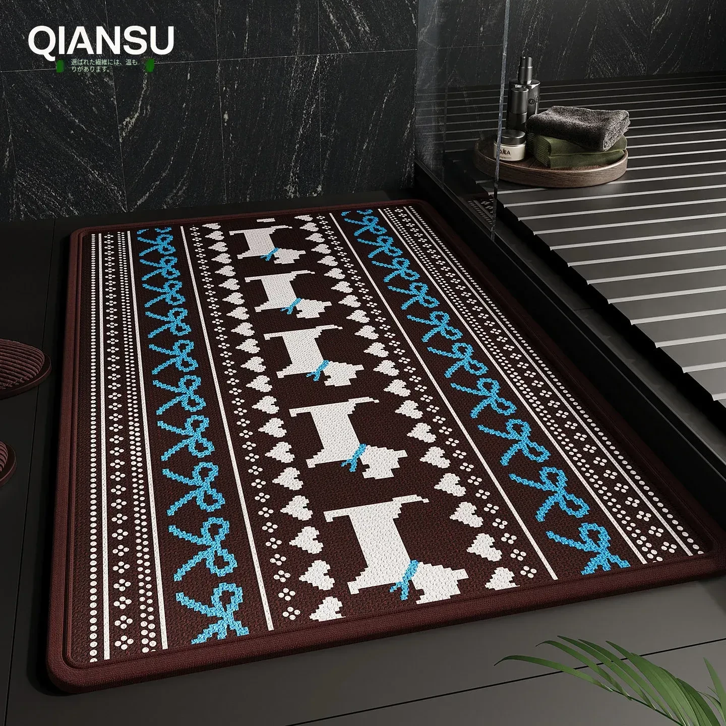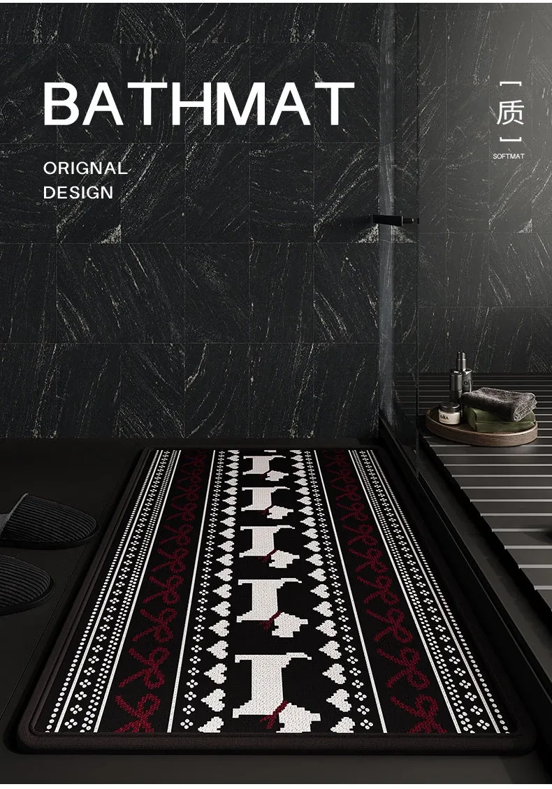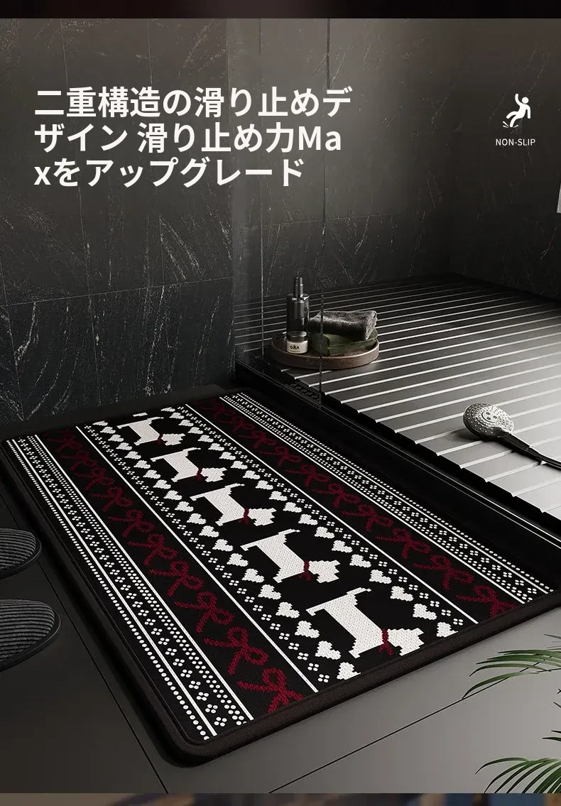 バスルーム用吸水マット|トイレ・洗面所・シャワー専用の滑り止めカーペット|手洗い不要!おしゃれな編み込みデザインで快適さをプラス!