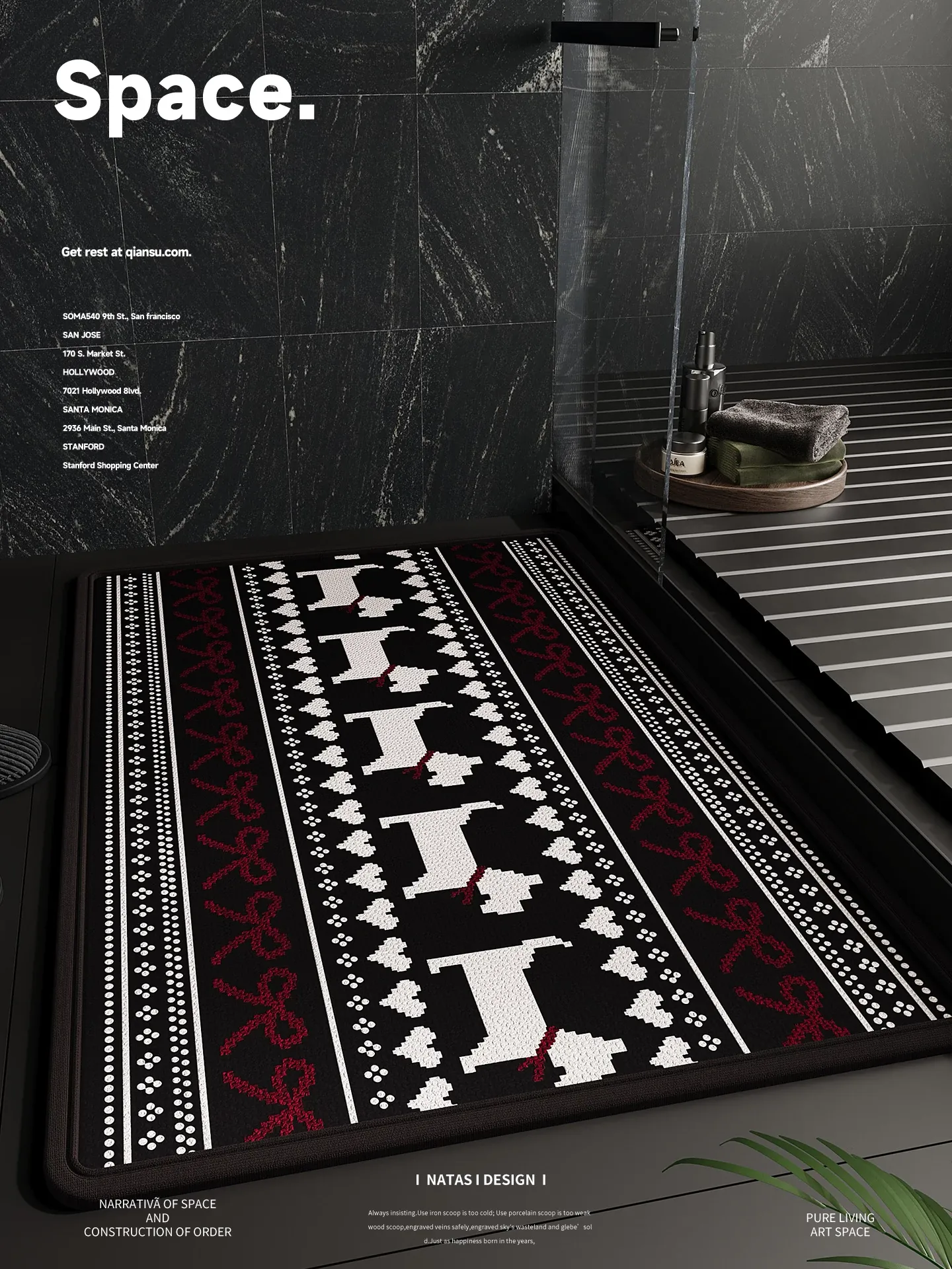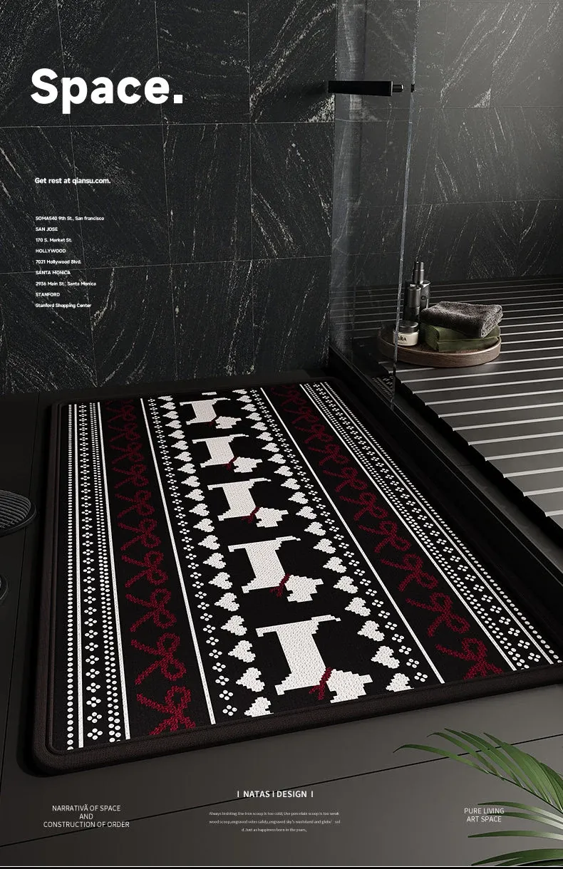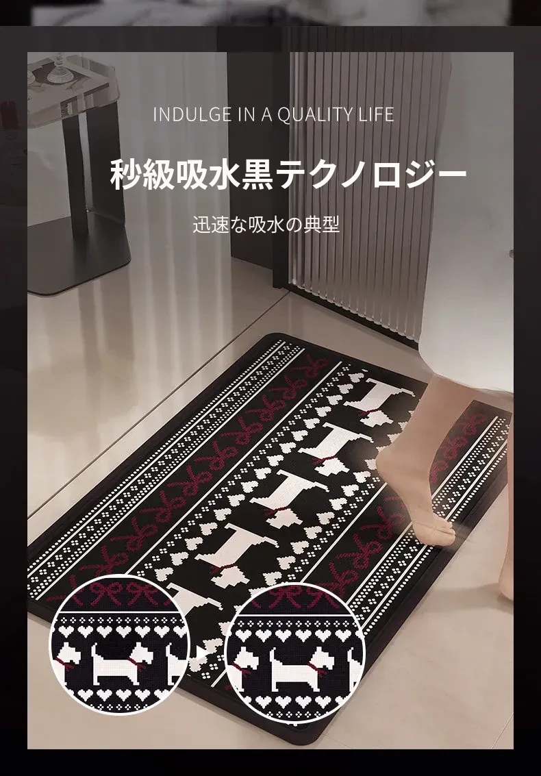 バスルーム用吸水マット|トイレ・洗面所・シャワー専用の滑り止めカーペット|手洗い不要!おしゃれな編み込みデザインで快適さをプラス!