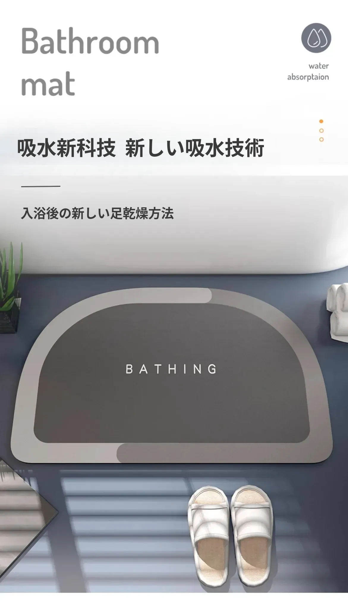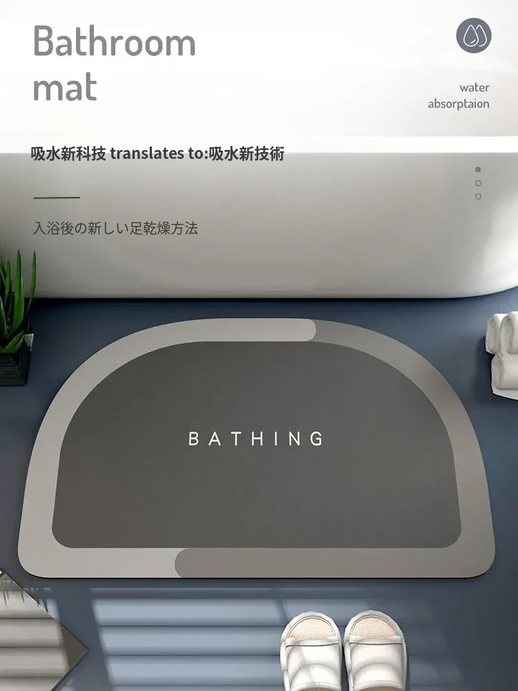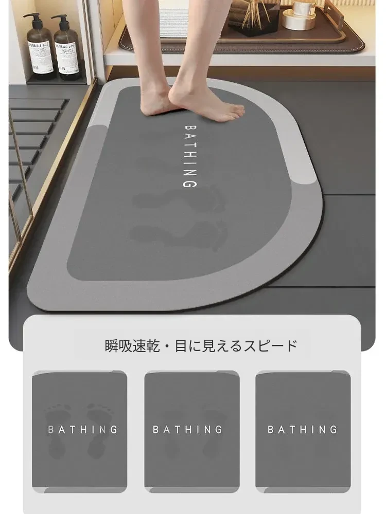吸水性抜群!新型シリカゲルバスマット - トイレや洗面所にぴったりの滑り止めマット!お手入れ不要で清潔感をキープ。おしゃれなデザインで、バスルームを素敵に演出します!