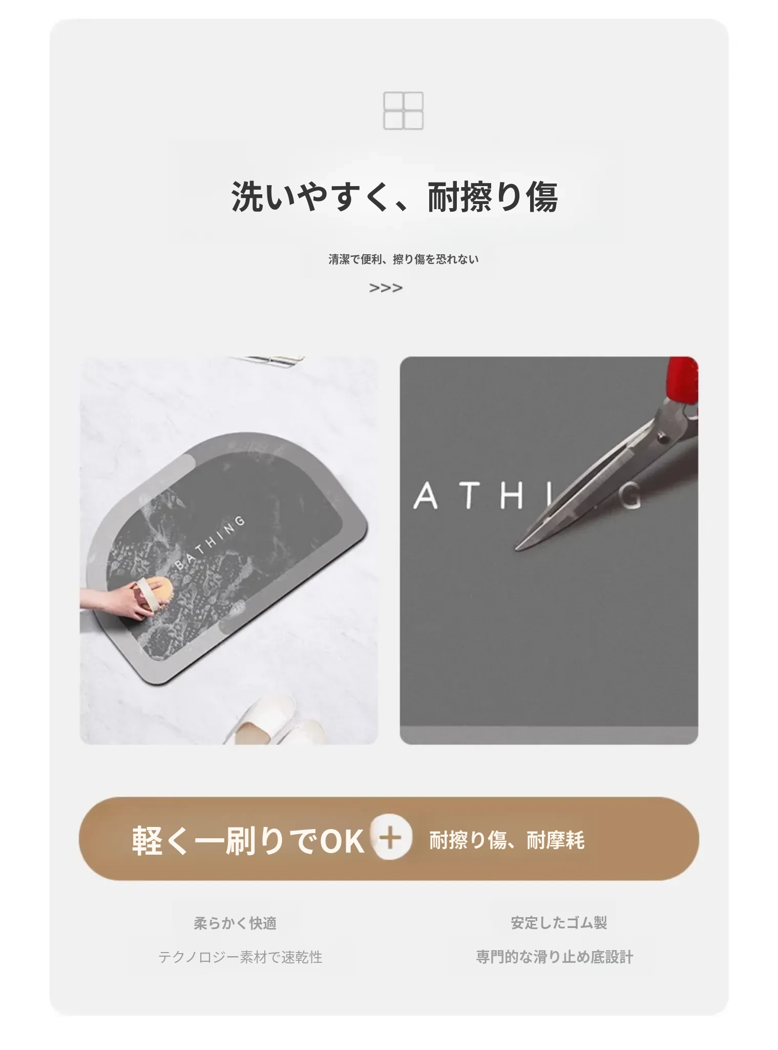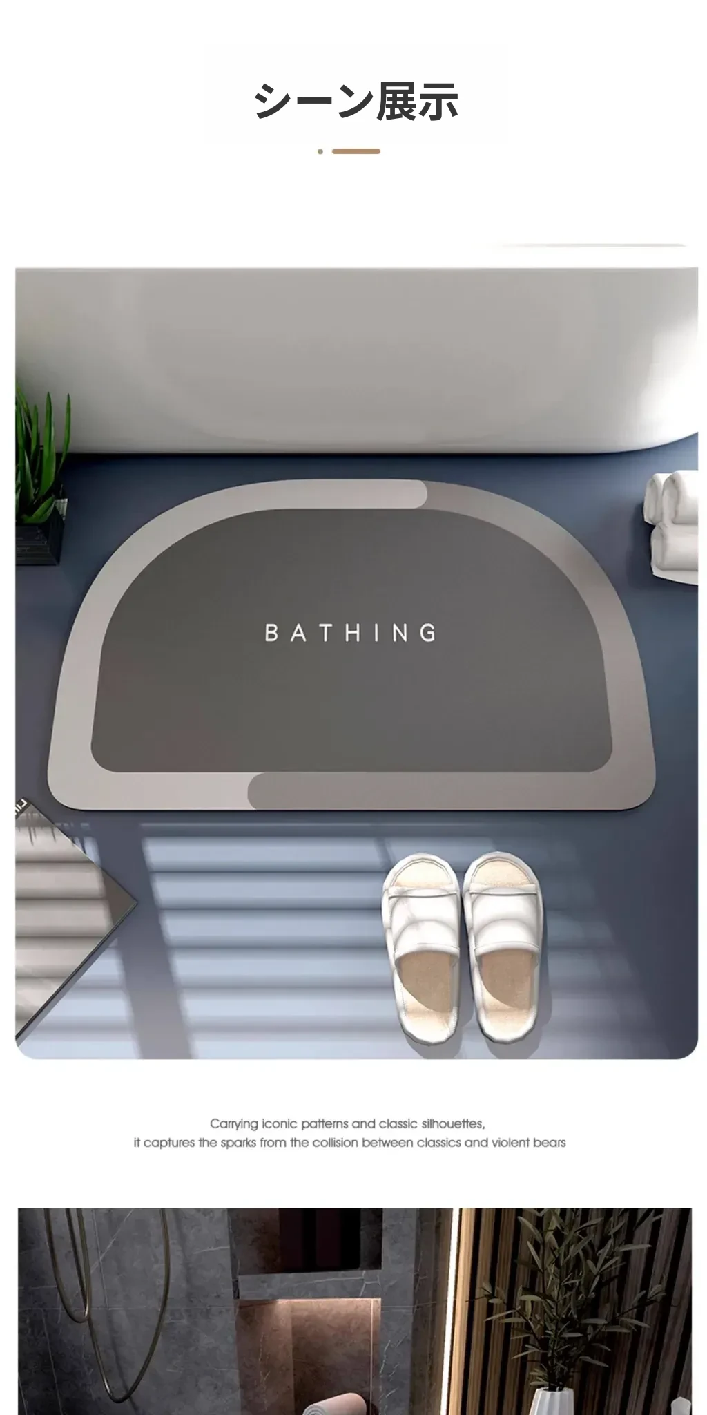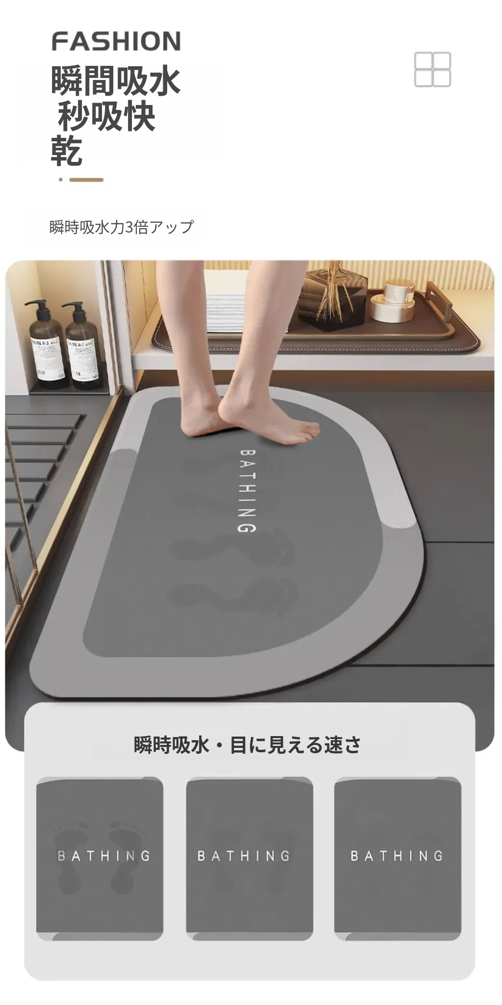 吸水性抜群!新型シリカゲルバスマット - トイレや洗面所にぴったりの滑り止めマット!お手入れ不要で清潔感をキープ。おしゃれなデザインで、バスルームを素敵に演出します!