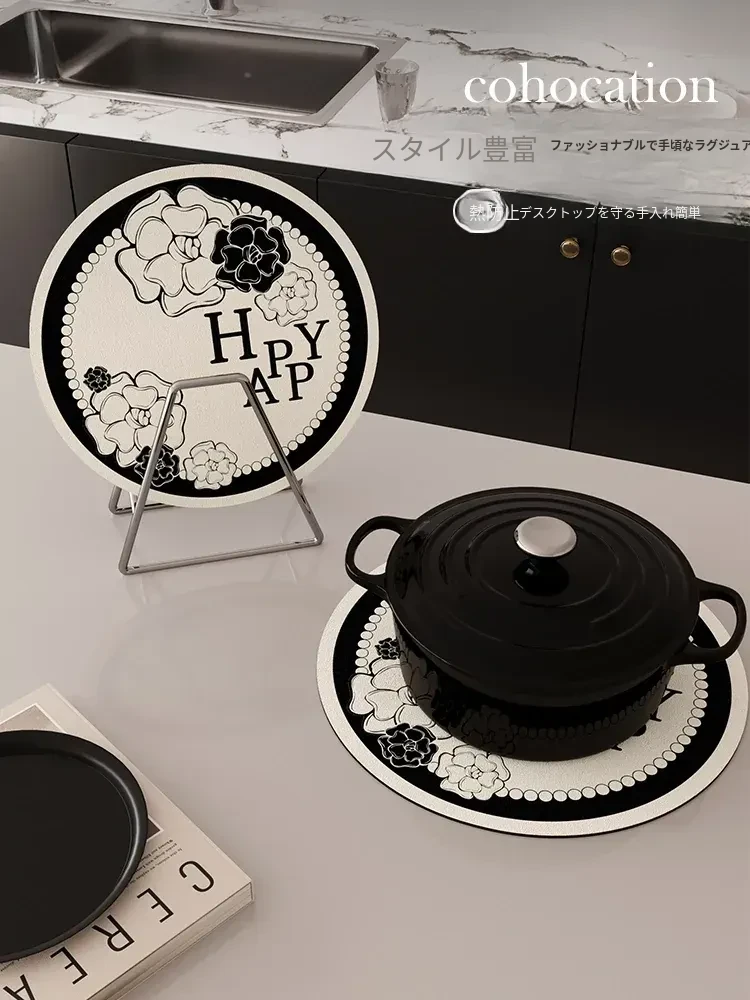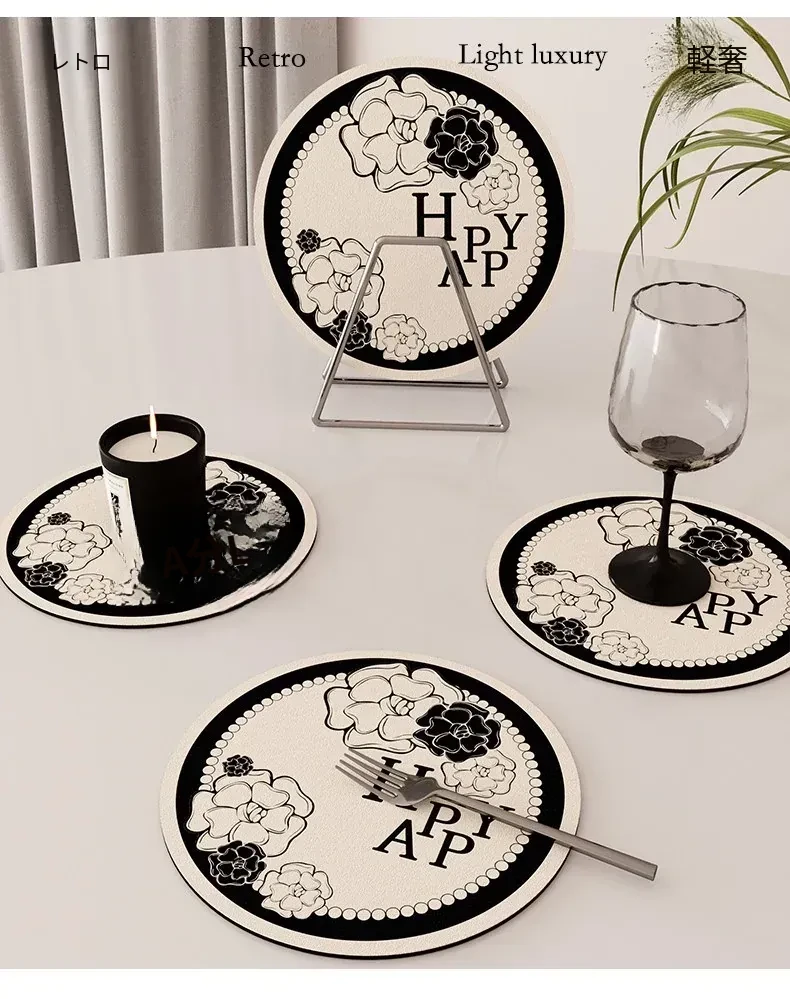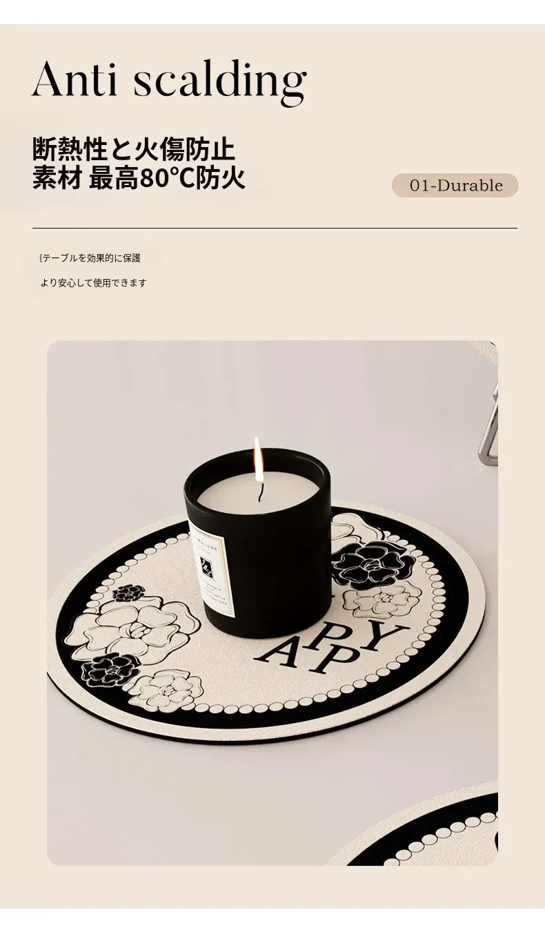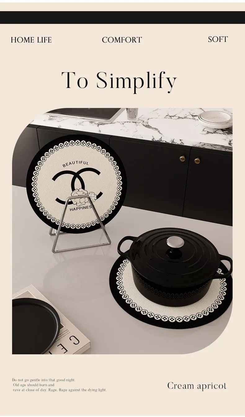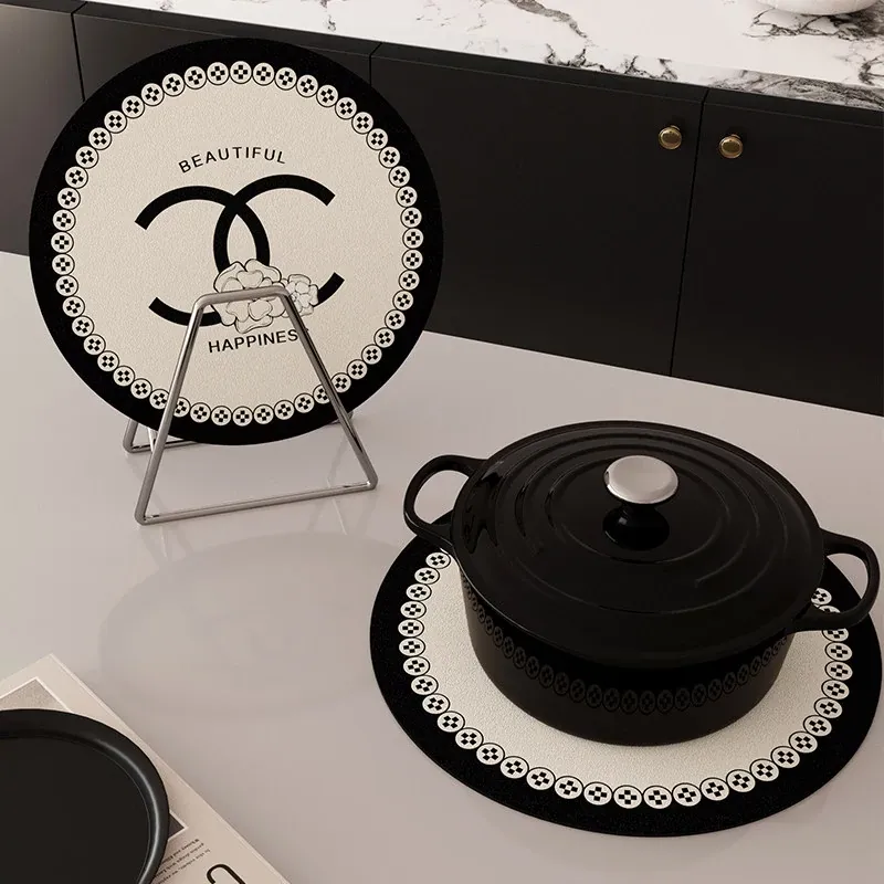 シャネル風の耐熱マット - 高温に耐えるおしゃれな鍋用テーブルマット!吸水性抜群、カップやティーセットを守る防熱マット。家庭用に最適なカップマット・茶托で、スタイリッシュな食卓を演出します!