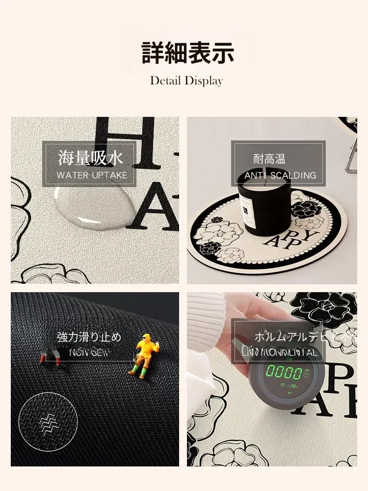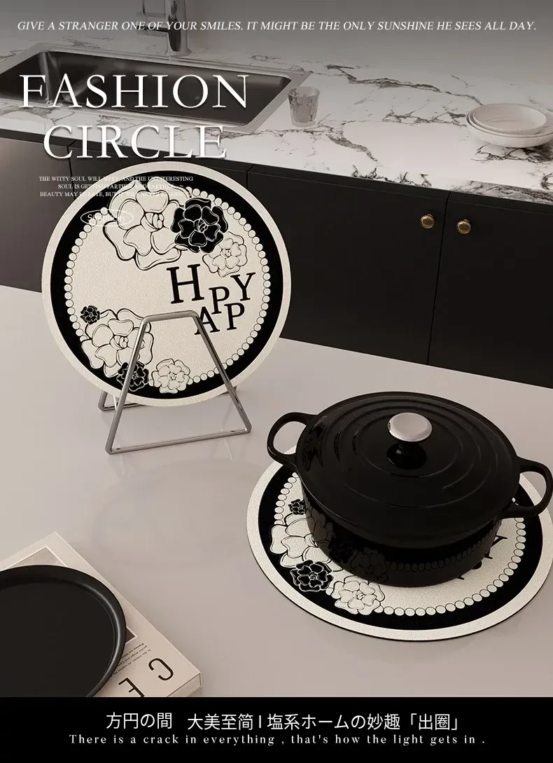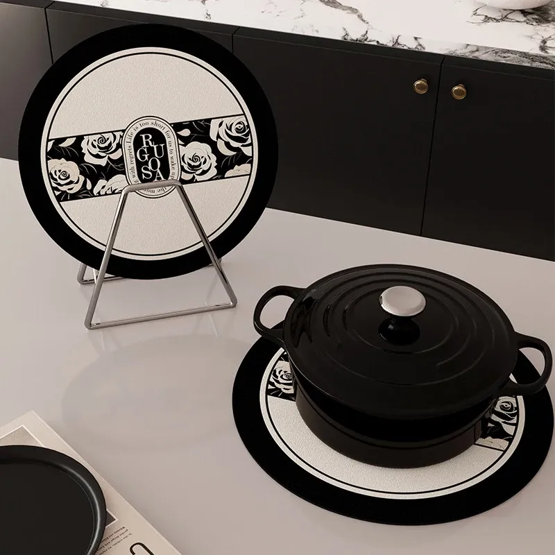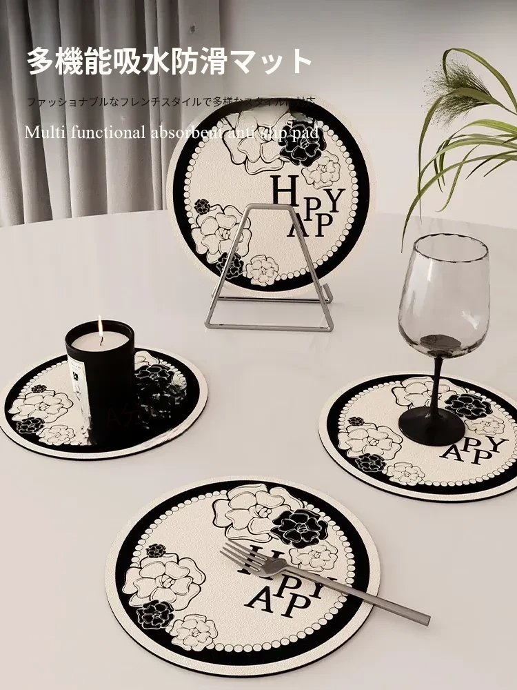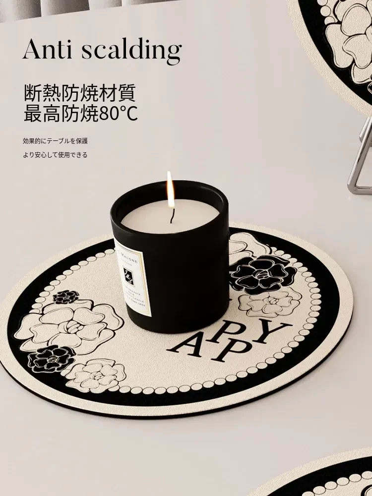 シャネル風の耐熱マット - 高温に耐えるおしゃれな鍋用テーブルマット!吸水性抜群、カップやティーセットを守る防熱マット。家庭用に最適なカップマット・茶托で、スタイリッシュな食卓を演出します!