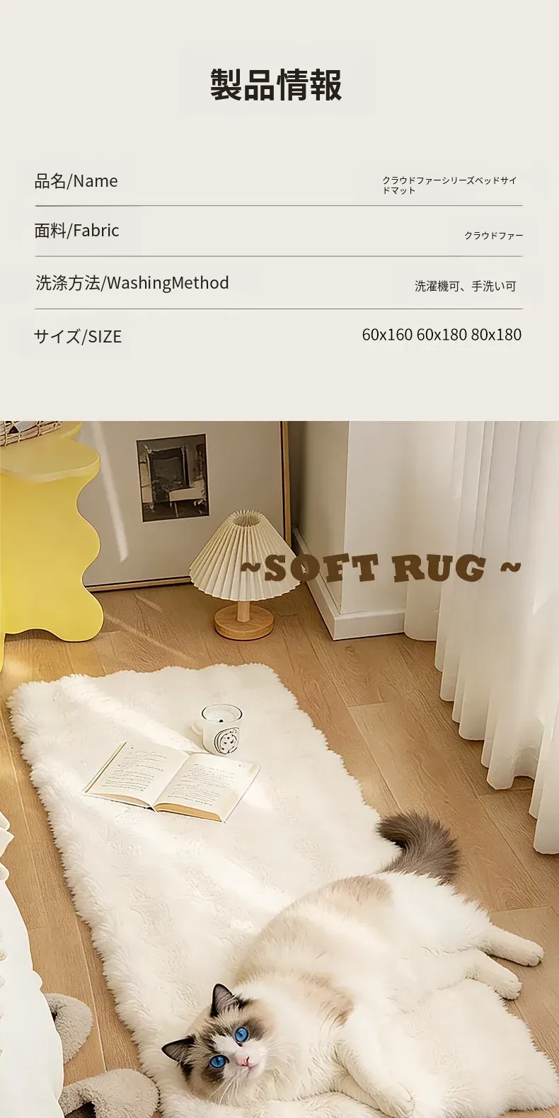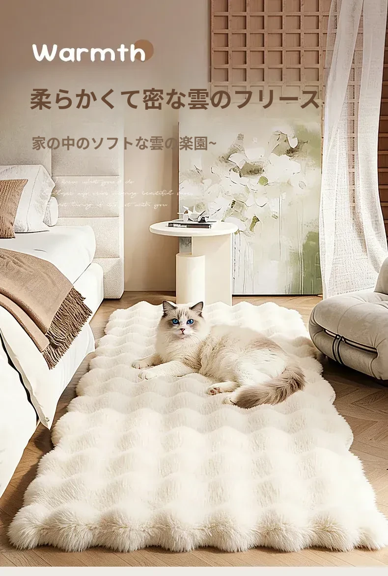 新作!高級感あふれる厚手ベッドサイドマット、ふんわり柔らかいフロアカーペット。滑り止め付きで安全、寝室にぴったりな防音効果があり、快適な空間を演出します。