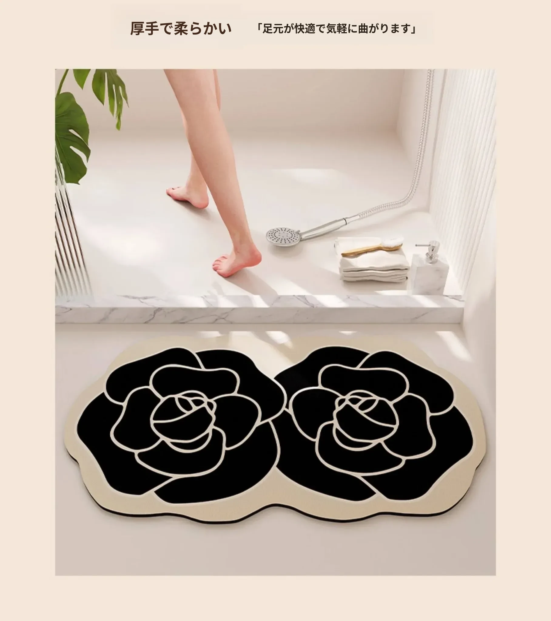 高級バスルームマット|吸水性抜群・滑り止め付き|トイレやバスタブの入口に最適|速乾・お手入れ簡単で清潔感アップ!