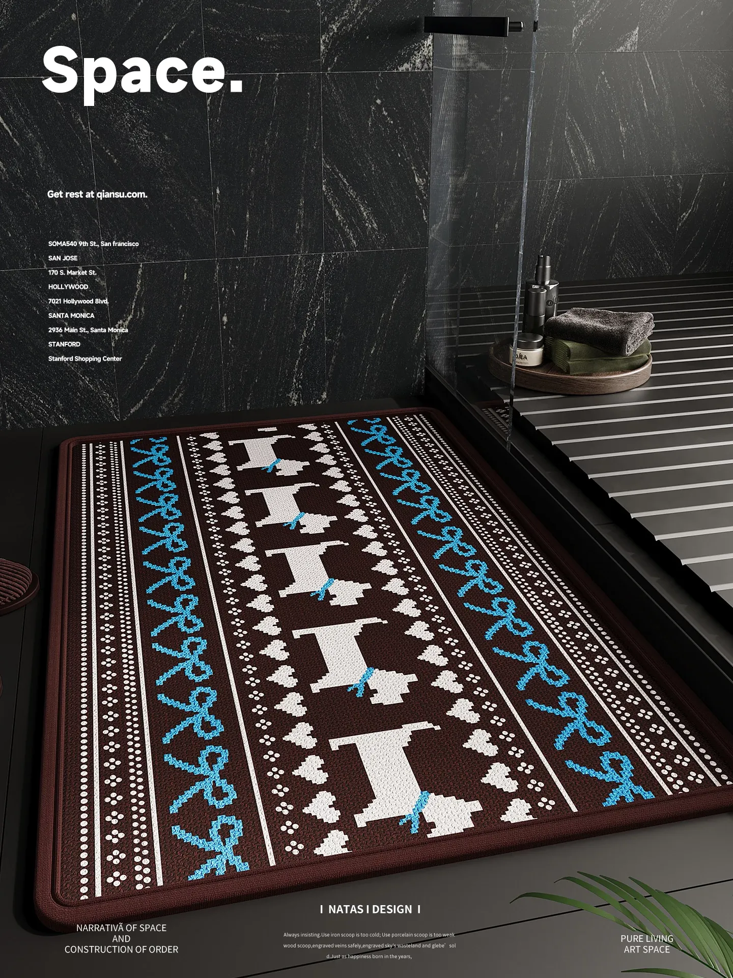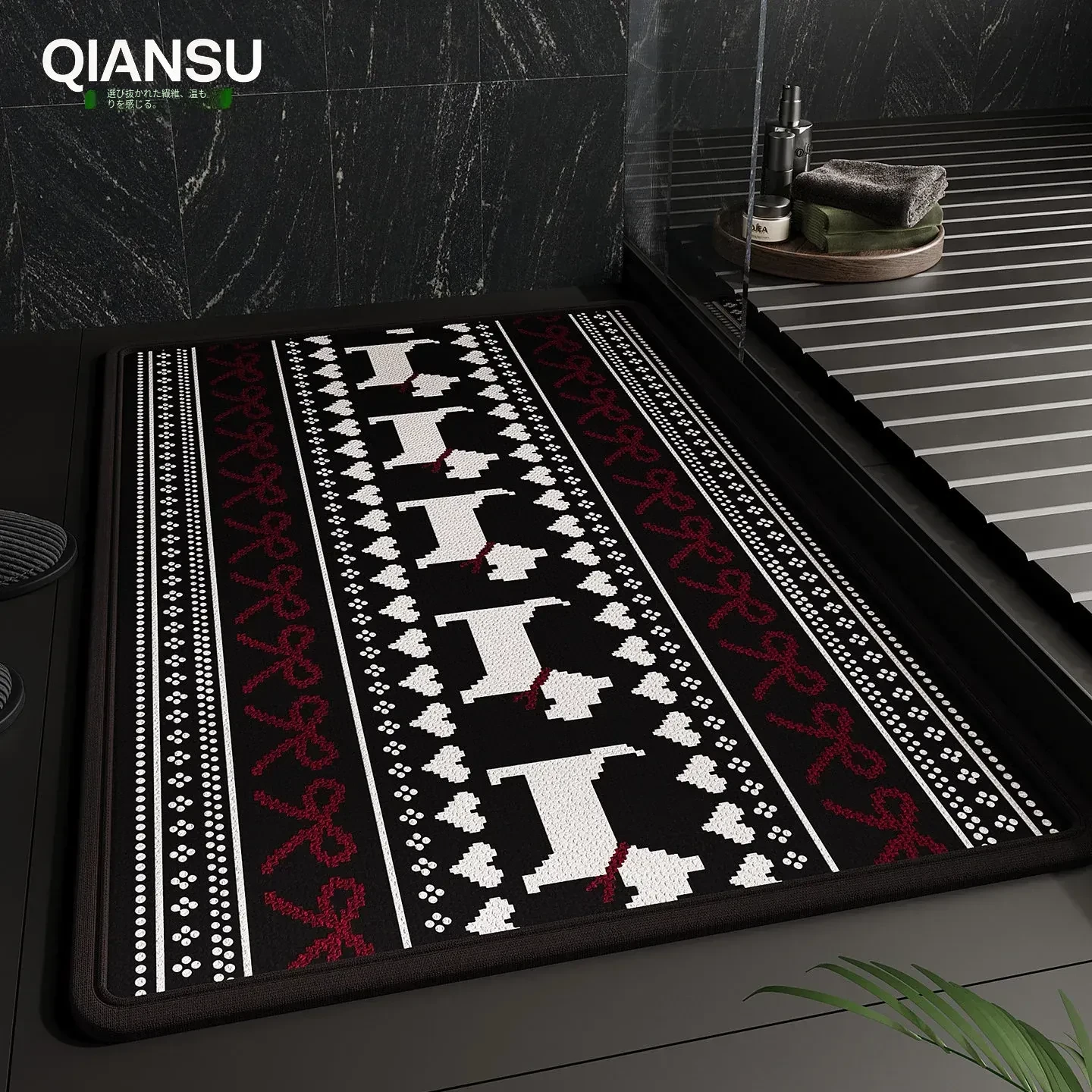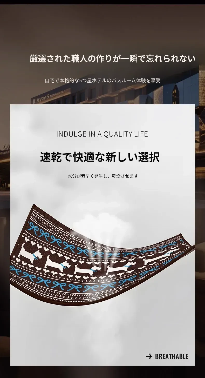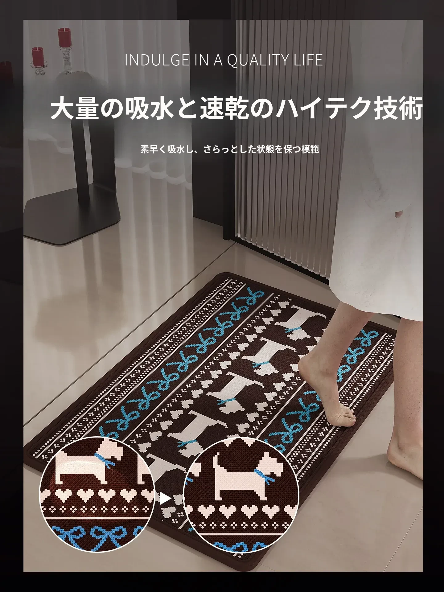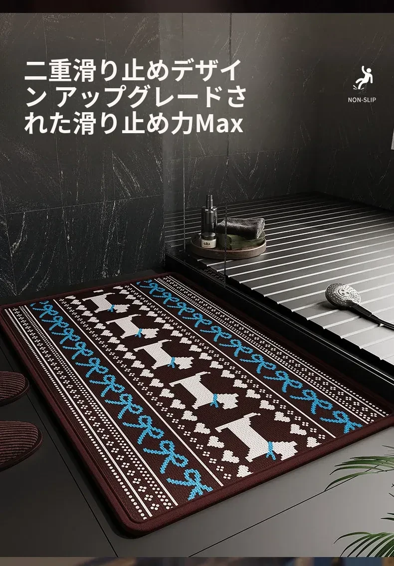 吸水性抜群!トイレ・バスルーム専用マット、洗濯不要の防滑設計で安心。快適な足元を提供するおしゃれな織りデザイン。お風呂上がりやトイレの必需品!