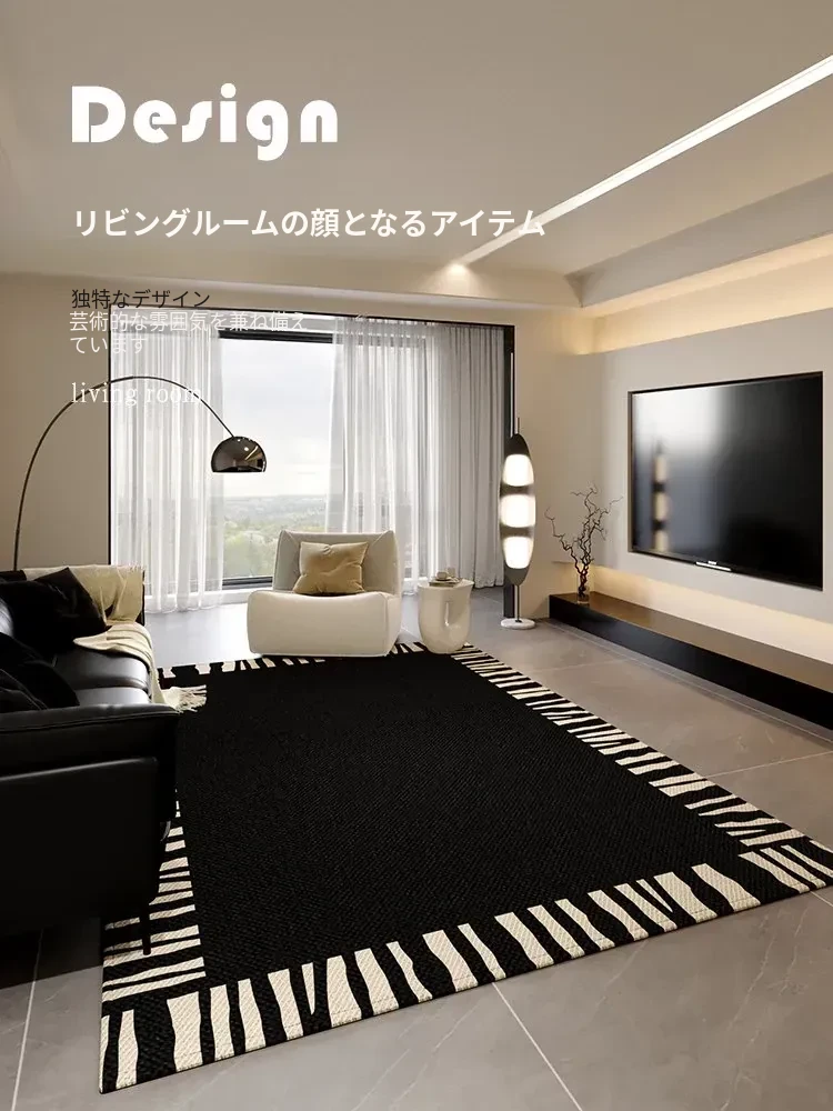 2026年新作!高級免洗ソファマット - シンプルでラグジュアリーなデザイン、厚手の防水性を備えたブラック&ホワイトのリビングルーム用カーペット。快適な空間を演出します!
