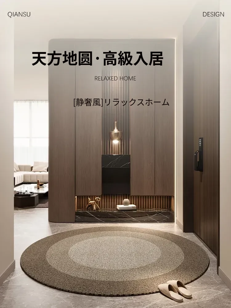 円形の玄関マット - おしゃれで高級感あふれる新デザイン!滑り止め付きで安心、リビングや玄関にぴったりのインテリアアイテム。あなたの家をさらに魅力的に演出します!