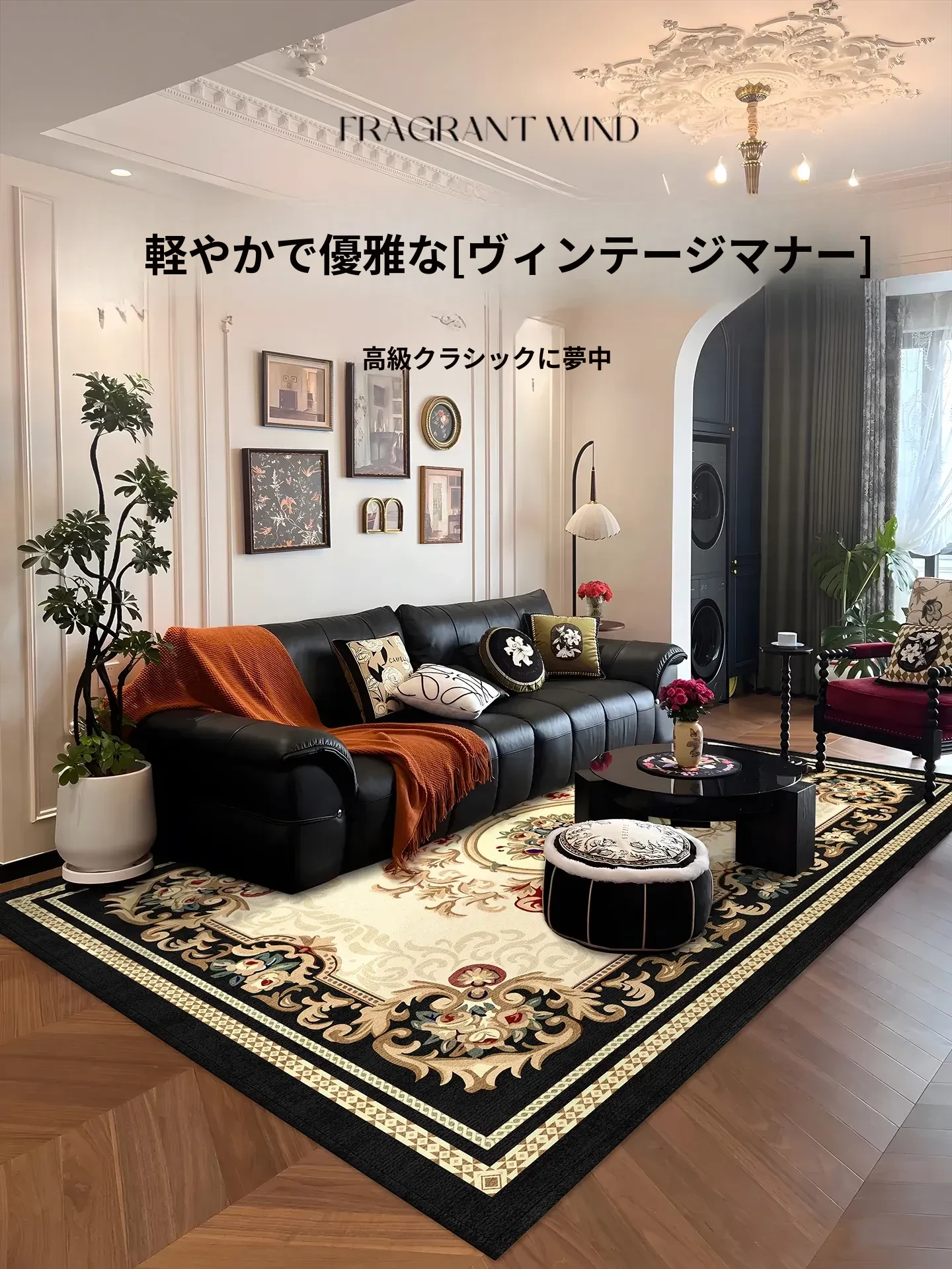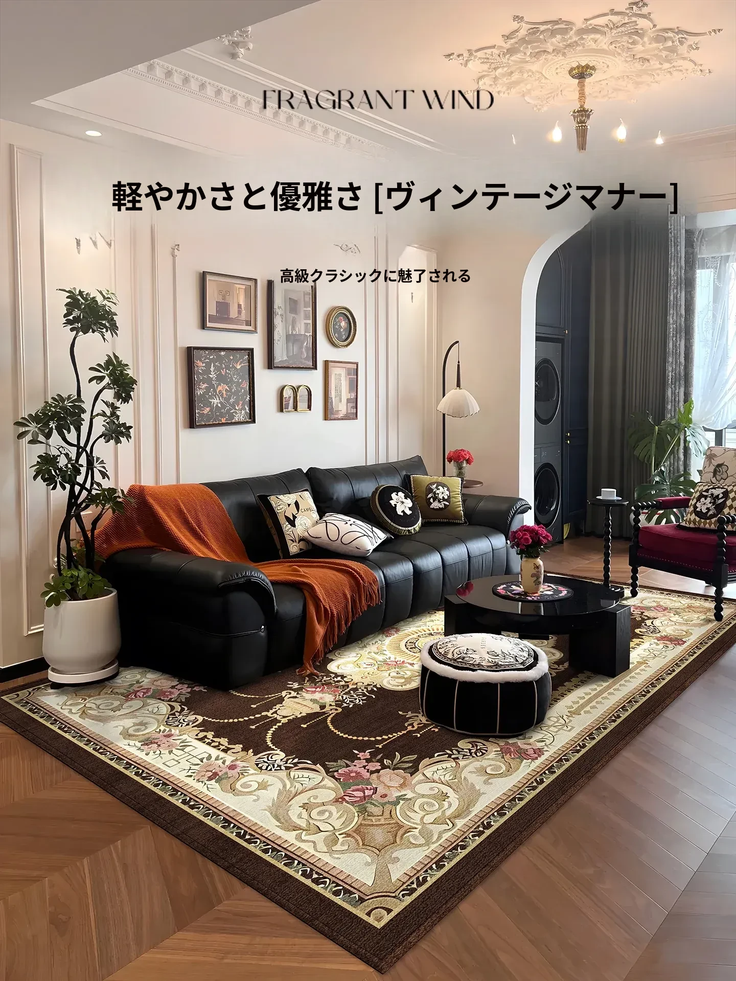 新作!高級フレンチデザインのリビングルームカーペット - お手入れ簡単、防水・抗汚仕様の厚手ソファマット。レトロな雰囲気で中古のテーブルにもぴったり!快適な空間を演出します。