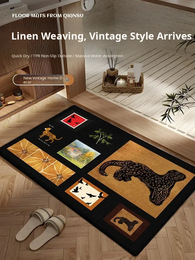 Elegant Vintage Bathroom Mat - Absorbent Non-Slip Rug for Bathroom, New Style Easy-Clean Floor Mat, Perfect for a Chic Home Decor