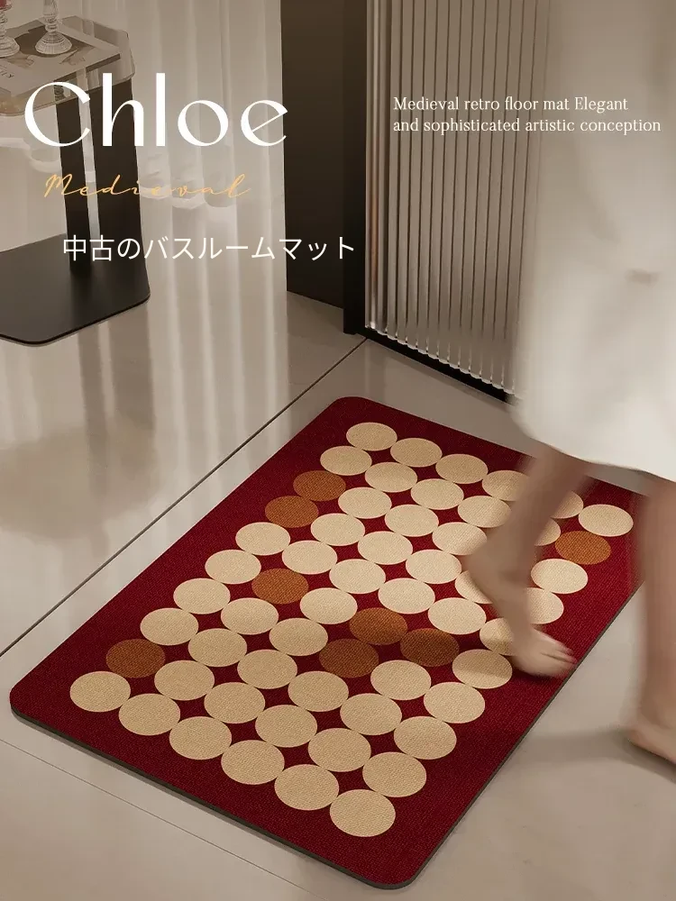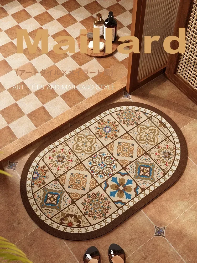 おしゃれで速乾性抜群!浴室用吸水マット - トイレの入り口やバスタブに最適な新作レトロデザイン。洗濯不要で滑り止め機能付き、安心して使えるバスマット。