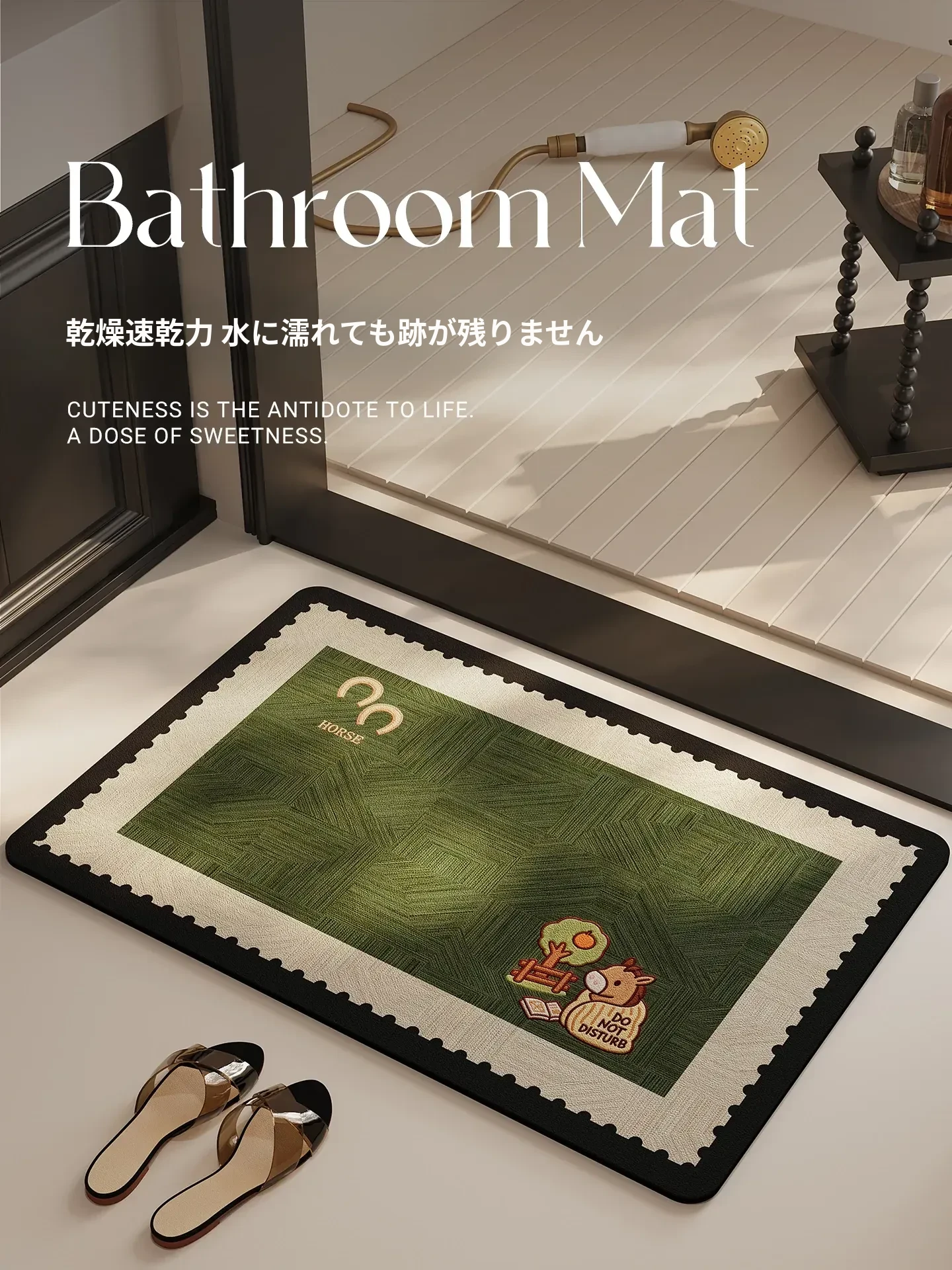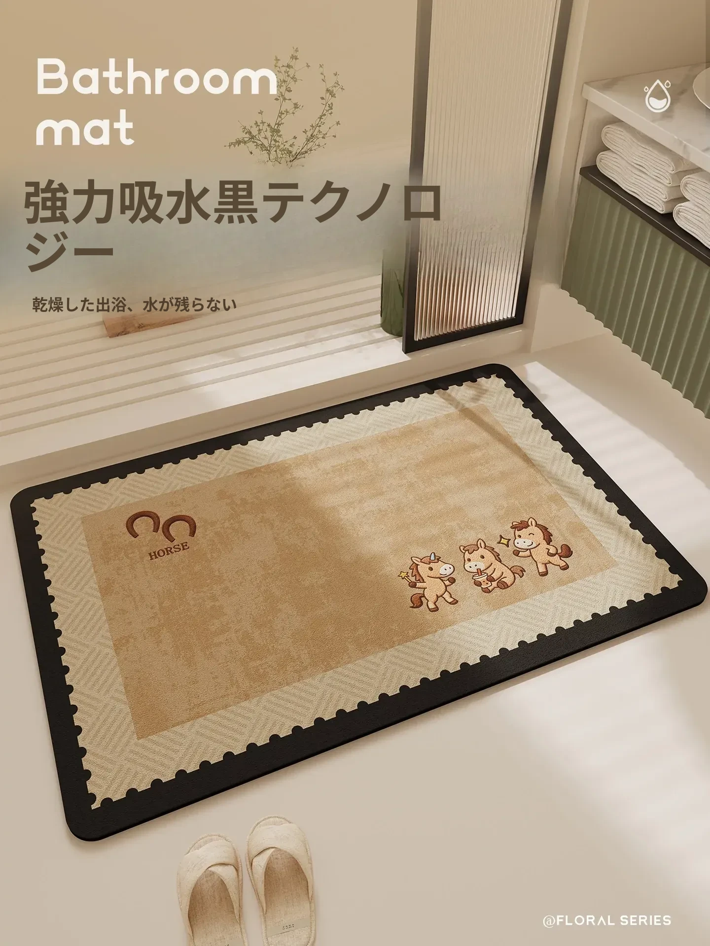 2026年新作!馬年デザインの防滑バスルームマット - トイレや洗面所に最適な吸水性抜群の衛生マット!おしゃれで安全、快適な空間を演出します。