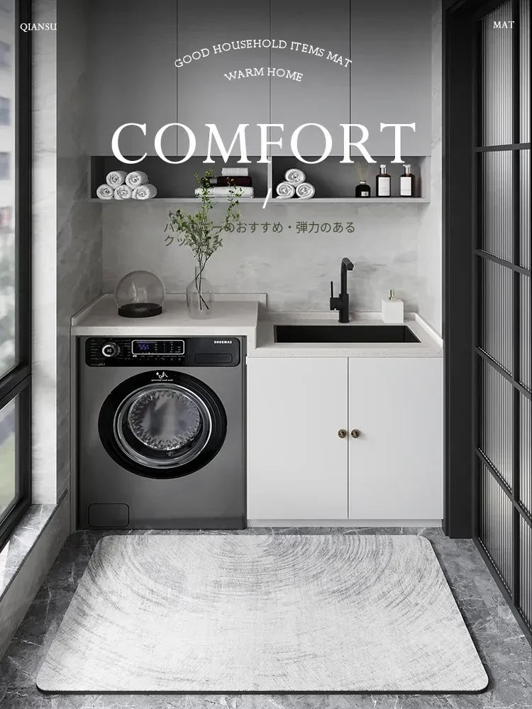 吸水性抜群!滑り止め付き洗濯機マット - バルコニーや洗濯槽前に最適な防水カーペット!シリカゲル素材で安心・快適な使用感。おしゃれなデザインでお部屋を彩り、掃除も簡単!
