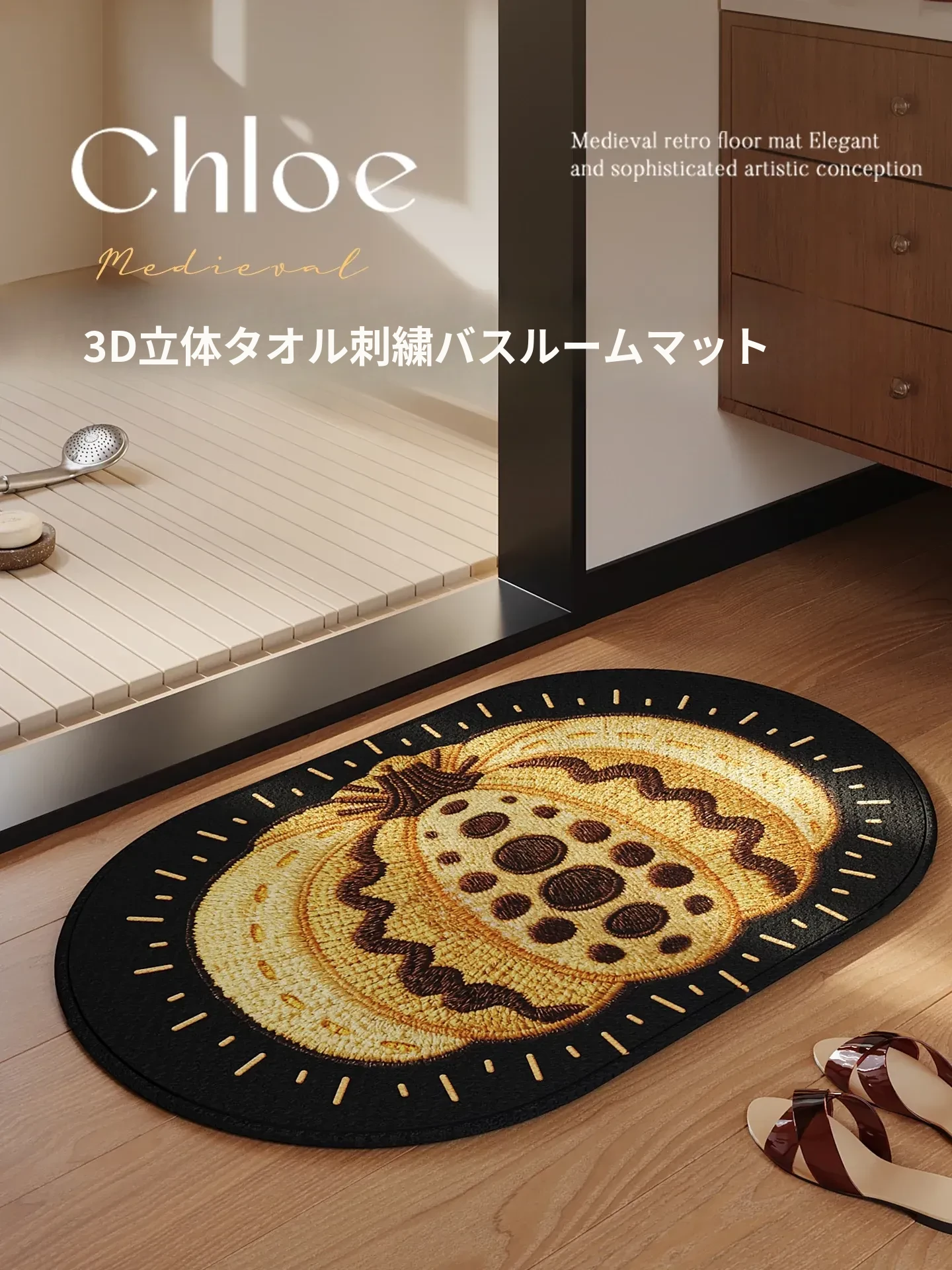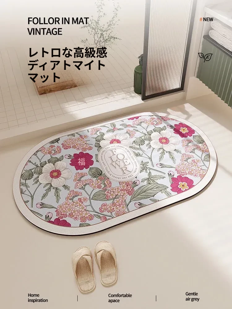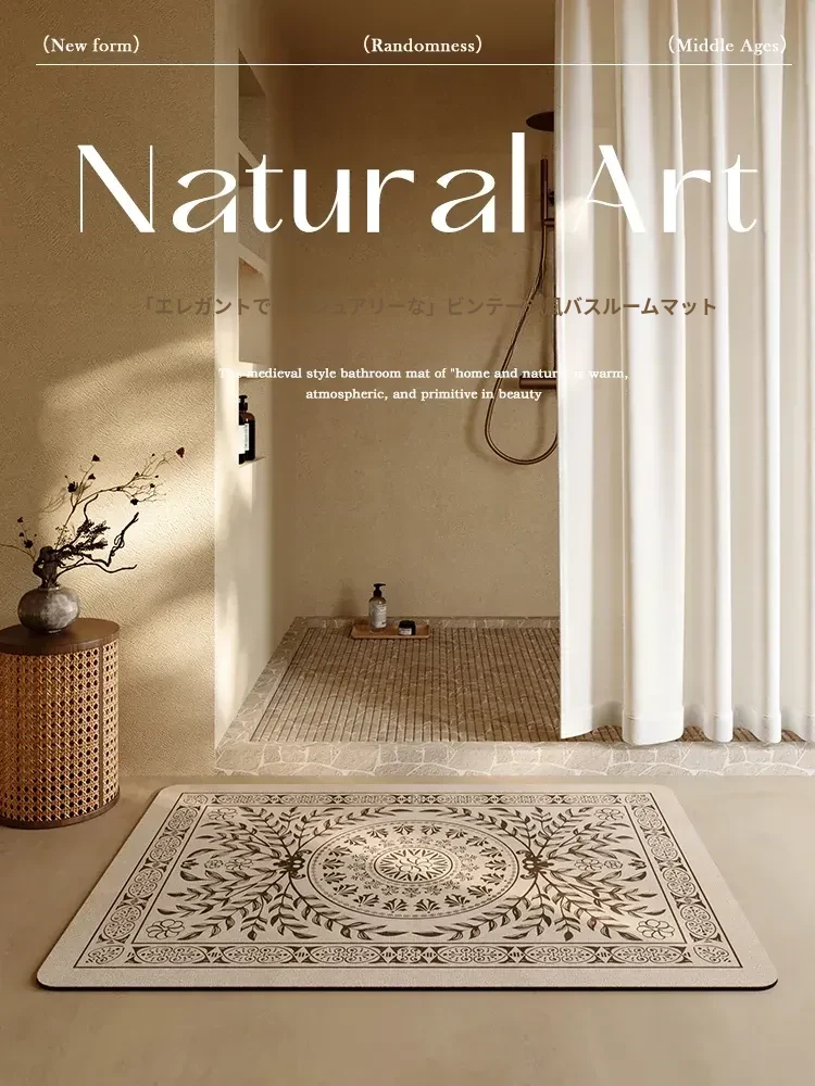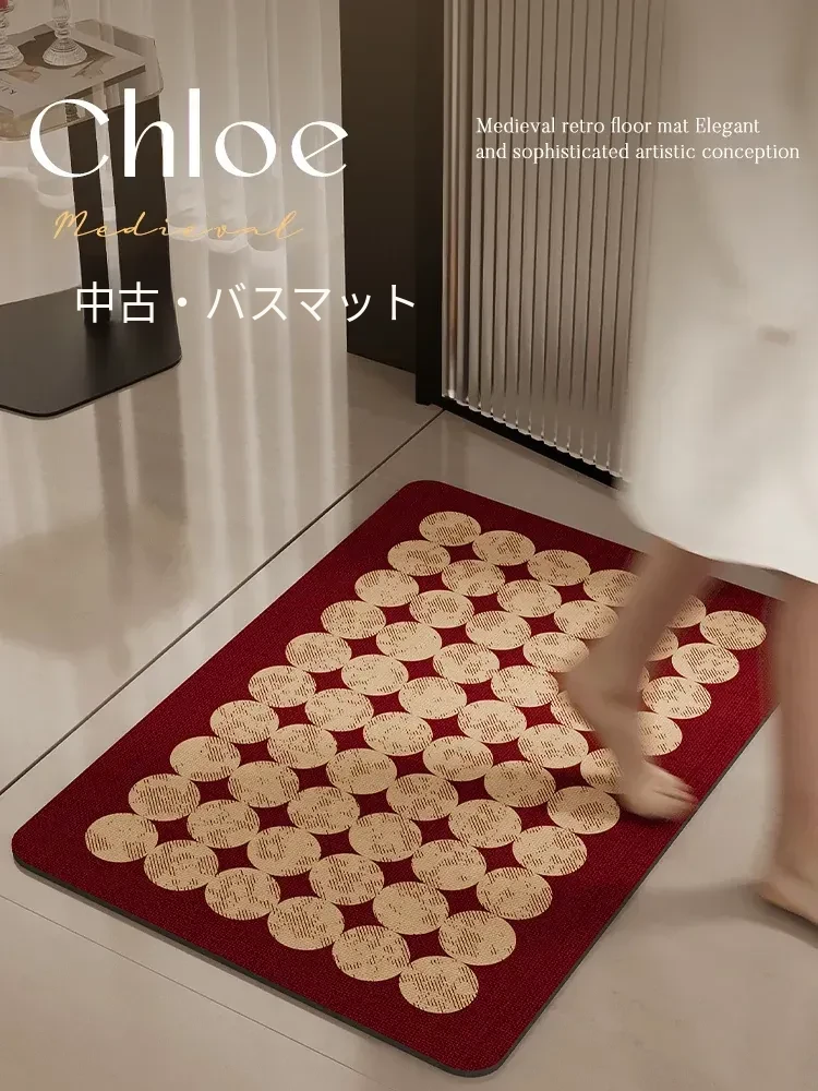 速乾バスルーム吸水マット|レトロで高級感溢れる厚手滑り止めトイレマット|洗濯不要でお手入れ簡単!魅力的なデザインでおしゃれな空間を演出!