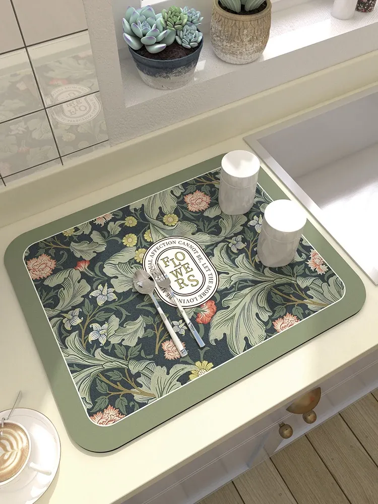 キッチンカウンターマット 吸水・乾燥マット シリカゲル製 皿洗い・シンク用 スポンジマット カップの水切りマット 耐熱・滑り止め機能付き キッチンを清潔に保つ必需品!