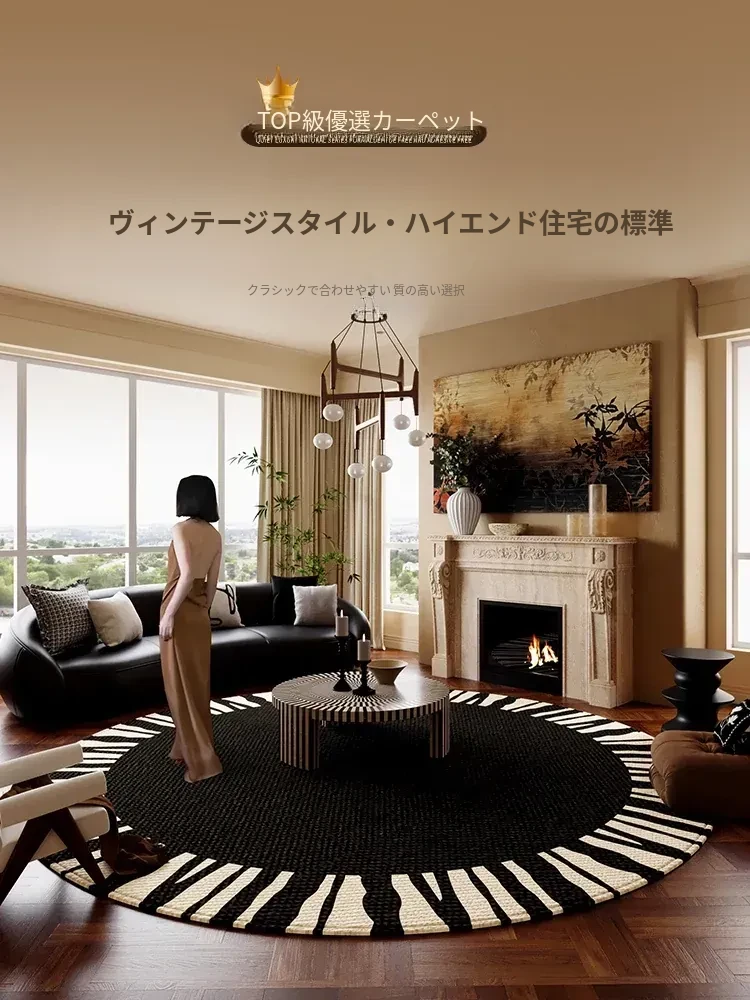 おしゃれな円形ラグマット|リビングや寝室にぴったりな高級感あるデザイン|防水・洗濯不要でお手入れ簡単|フレンチレトロスタイルのテーブルマット|快適な床辺を演出します!