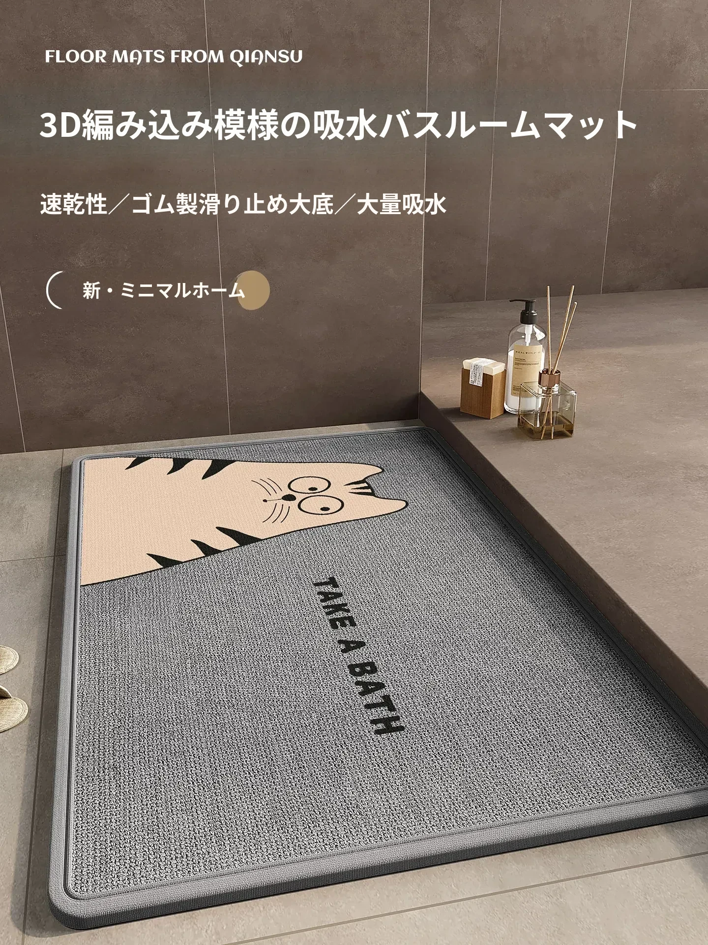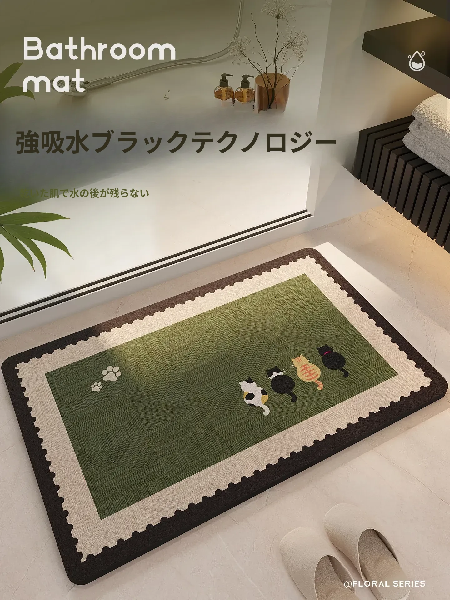 2026年新作!防滑バスルームマット - お手入れ簡単な吸水性トイレ用マット。家族を守る、安心・快適なバスルーム空間を実現!
