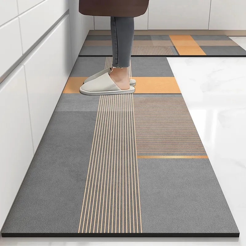 油汚れ防止!滑り止め機能付きキッチンマット - お手入れ簡単・吸水性抜群・PVC&珪藻土専用で清潔さをキープ!