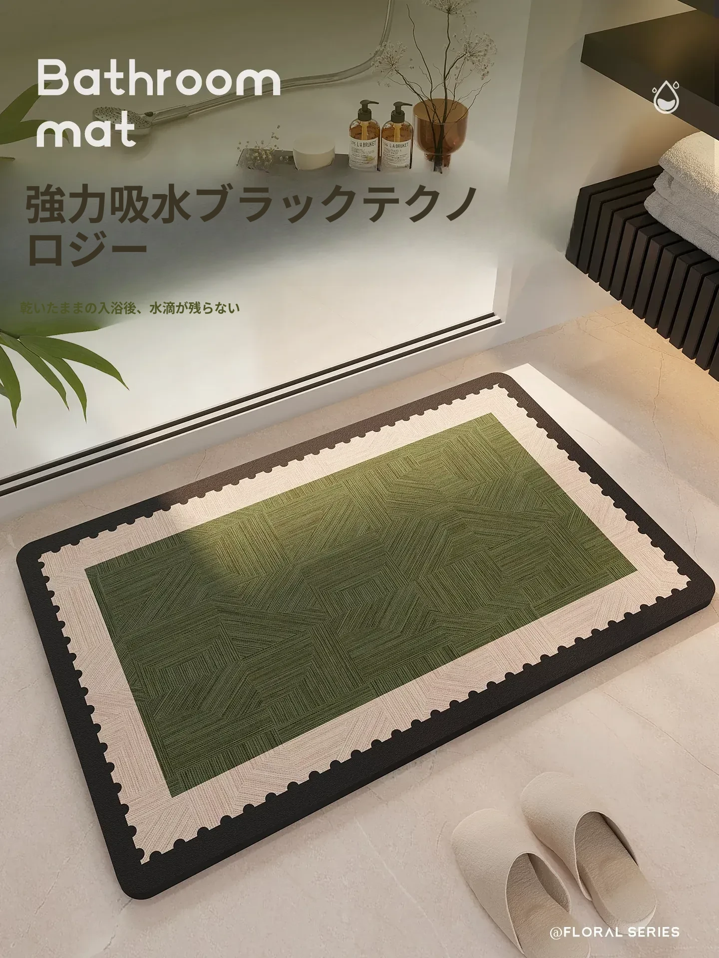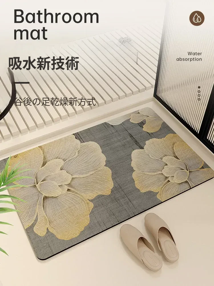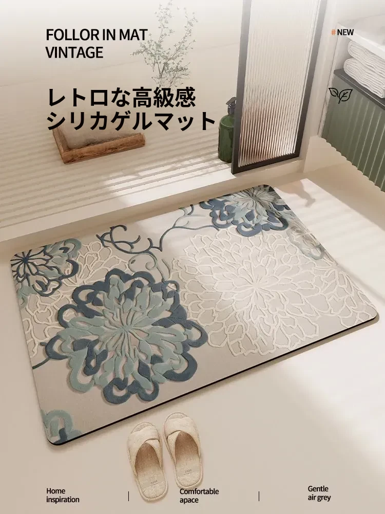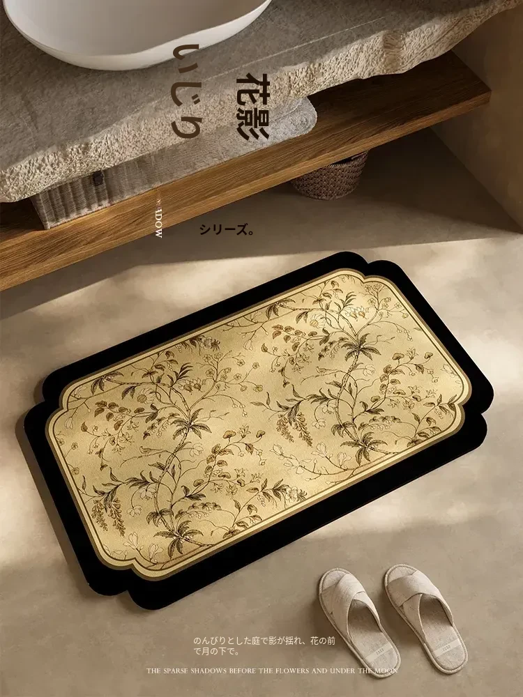 新作レトロ中式バスルーム吸水マット|滑り止め機能付き|速乾性のシリカゲル素材|洗面台やトイレに最適!快適で安全なバスタイムを演出します!