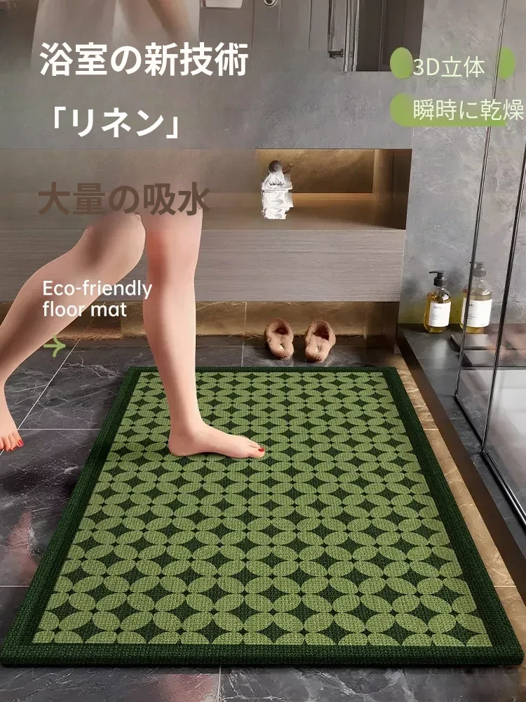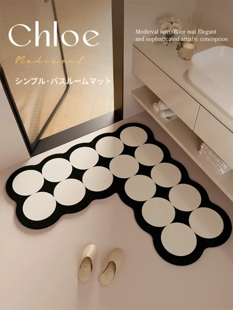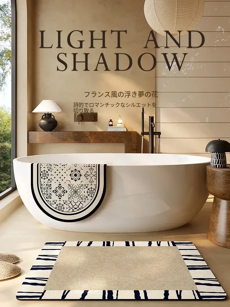 吸水性抜群!おしゃれなレトロデザインの防滑バスマット - 高級ソフトシリカ泥製、速乾性で衛生的なトイレマット。快適な足元を演出します!