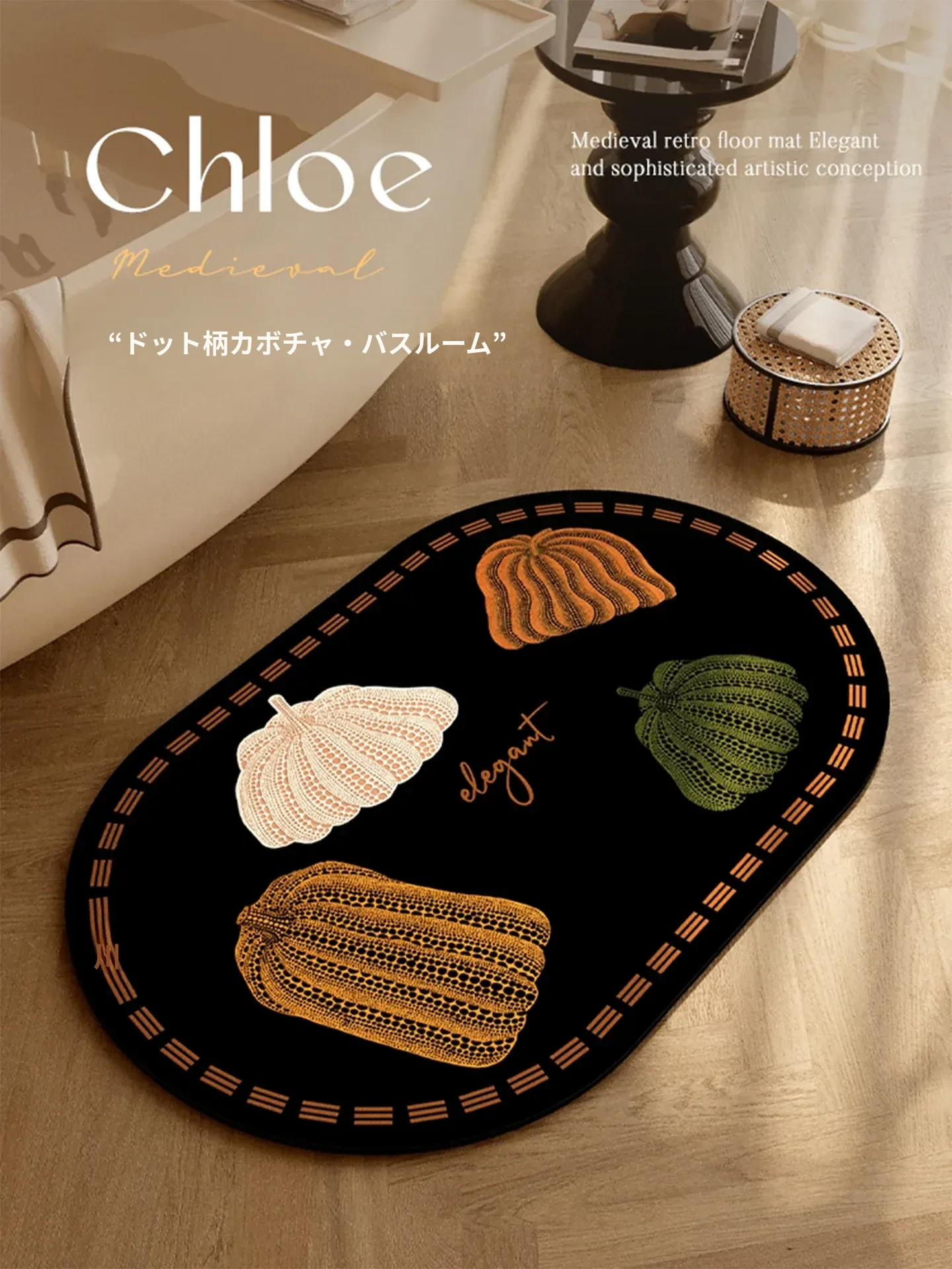 防滑吸水バスマット - 新感覚のドットデザインで、トイレや玄関にぴったり!水をしっかり吸収し、安心の防水機能で毎日の清潔をサポートします。南瓜モチーフでおしゃれなインテリアにも最適!