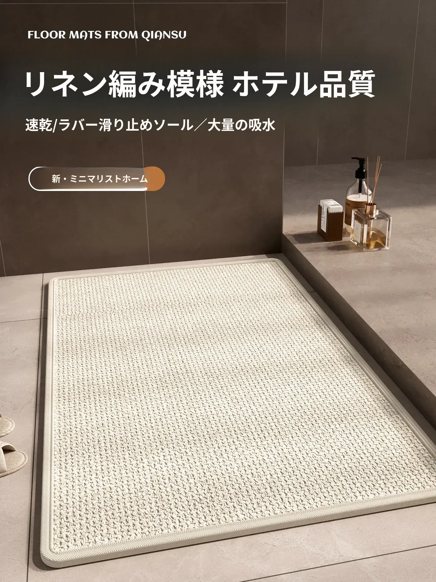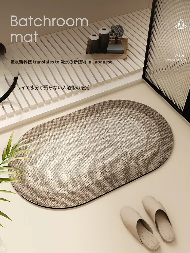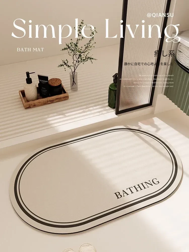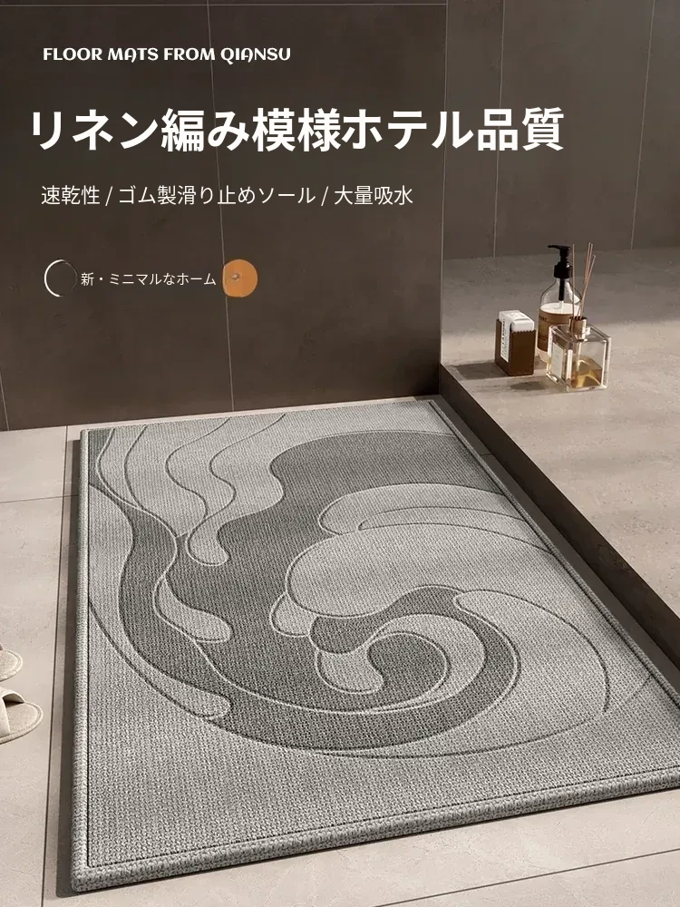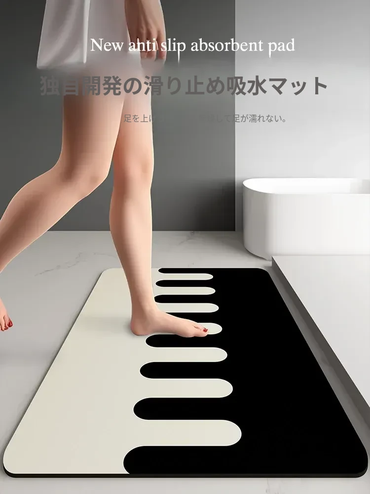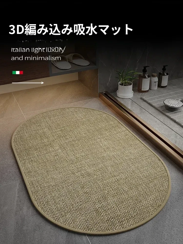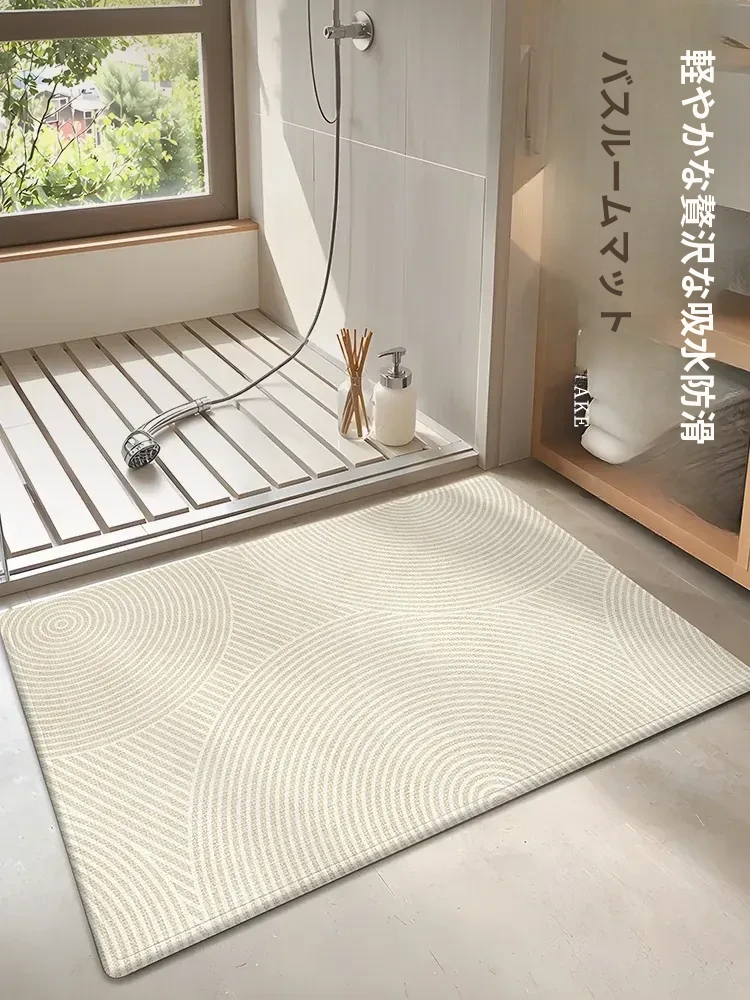 速乾性バスルーム吸水マット!滑り止め付きで安心、柔らかいクリーム風デザインのシリカゲルカーペット。厚手で、トイレや玄関にも最適。快適なバスタイムを実現!