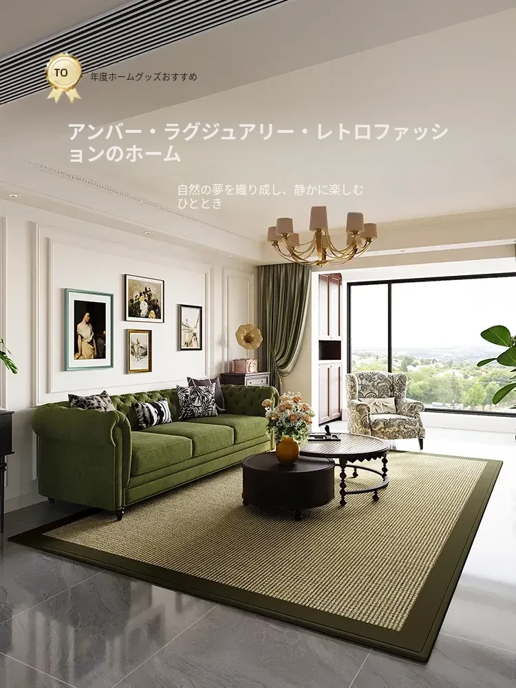 ヴィンテージ風新作リビングカーペット 高級ソファマット ベッドサイド用 おしゃれな寝室用 洗濯不要の厚手防水グリーンブランケット