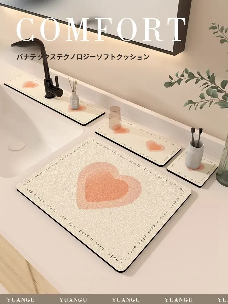 速乾性のシリカゲル洗面台吸水マット - 浴室・キッチン・トイレに最適!水分をしっかり吸収し、いつでも清潔で快適な空間を実現します。水栓下にもピッタリフィット!