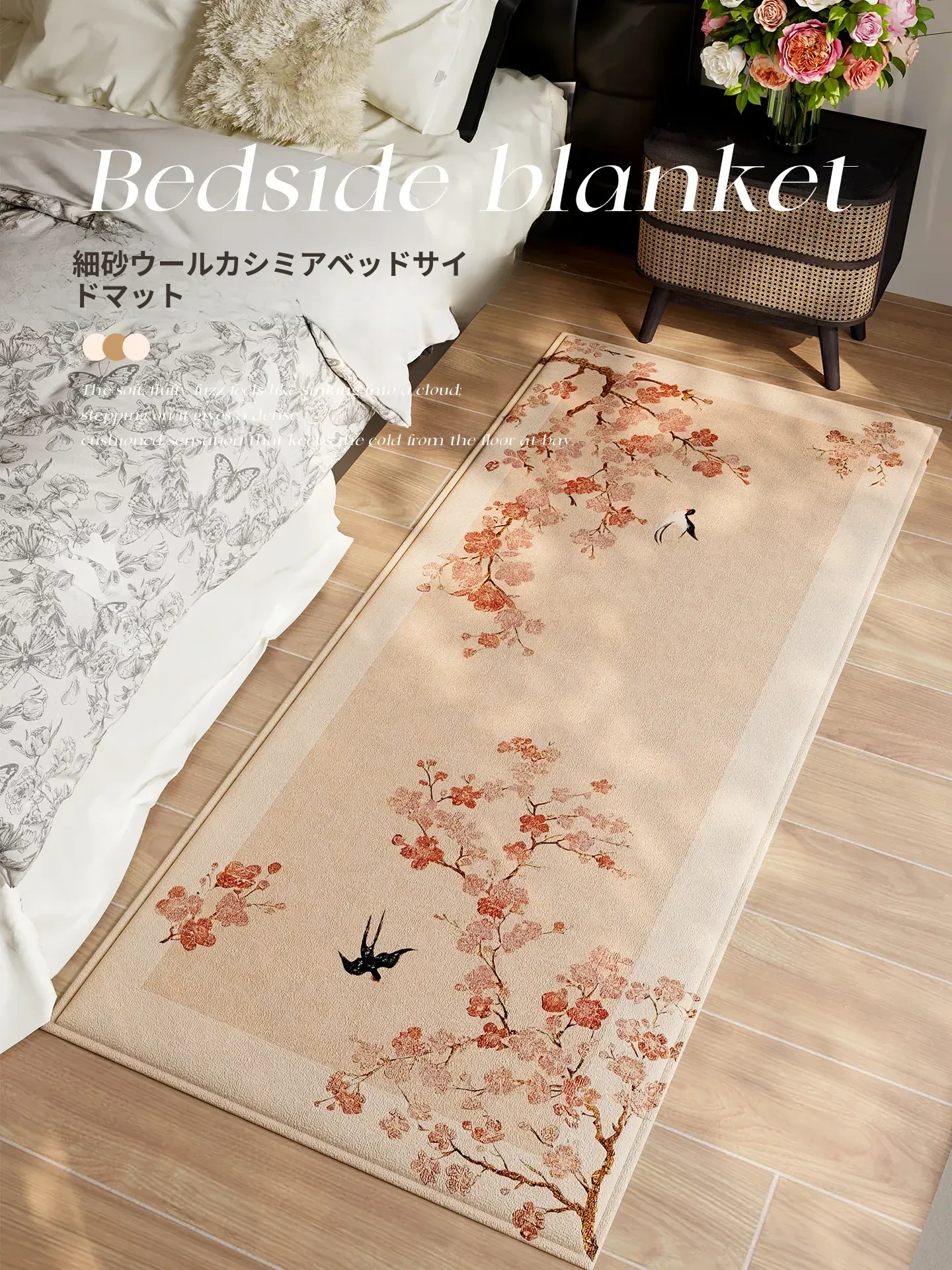 新作!厚手ベッドサイドマット 高級感あふれる寝室用カーペット 滑り止め付き ベッドフットマット 防水・洗濯不要でお手入れ簡単 家庭用マット