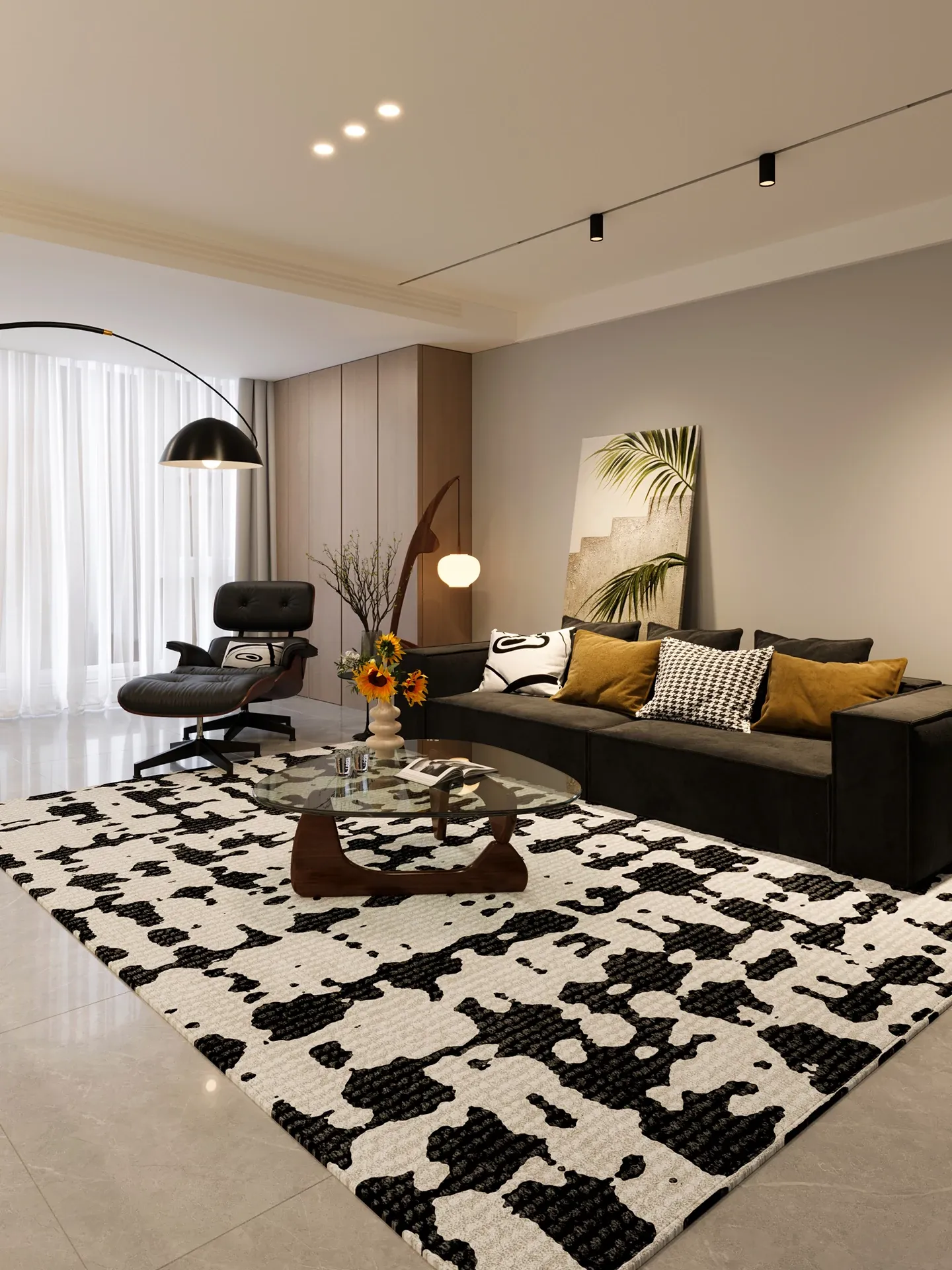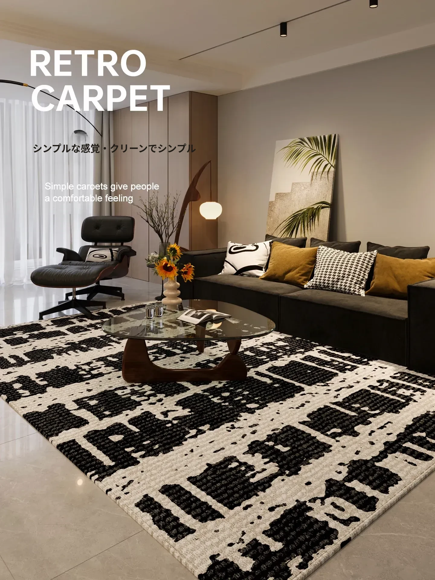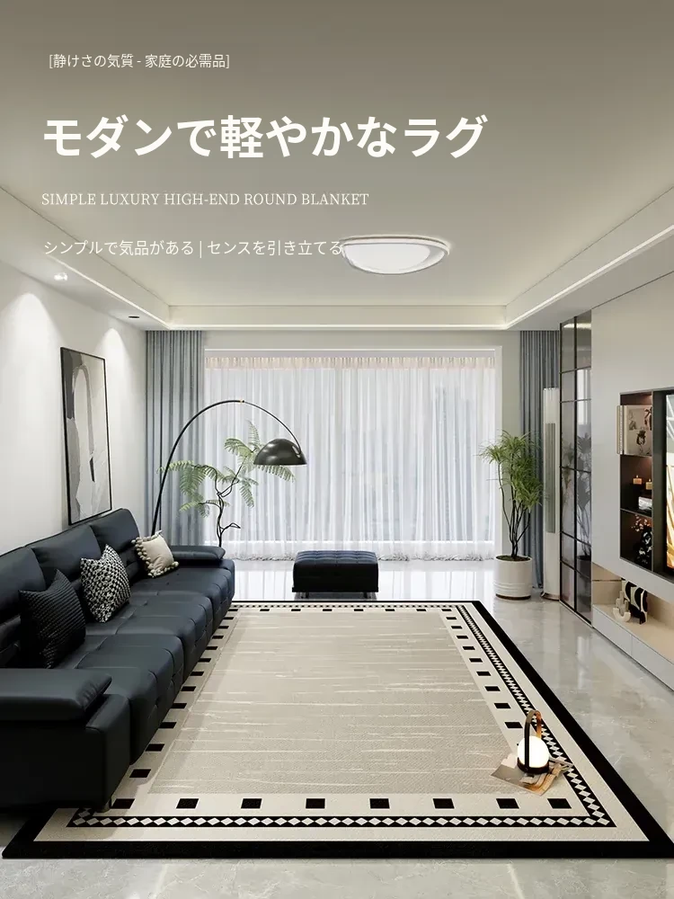 2026年新作!高級免洗ソファマット - シンプルでラグジュアリーなデザイン、厚手の防水性を備えたブラック&ホワイトのリビングルーム用カーペット。快適な空間を演出します!