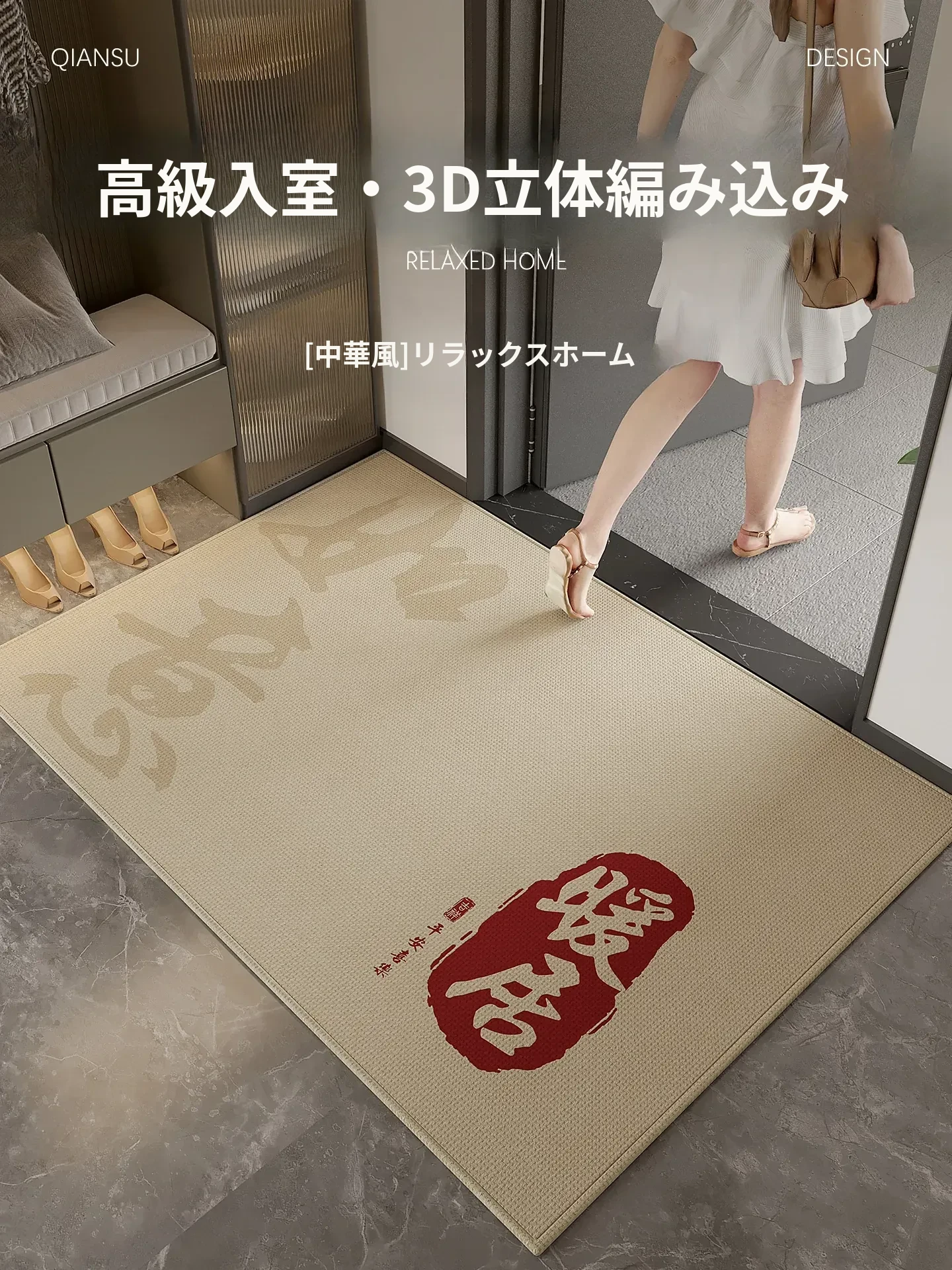 高級中式玄関マット|スリップ防止・カスタマイズ可能な新作|リビングにぴったりな美しいデザインのドアマット