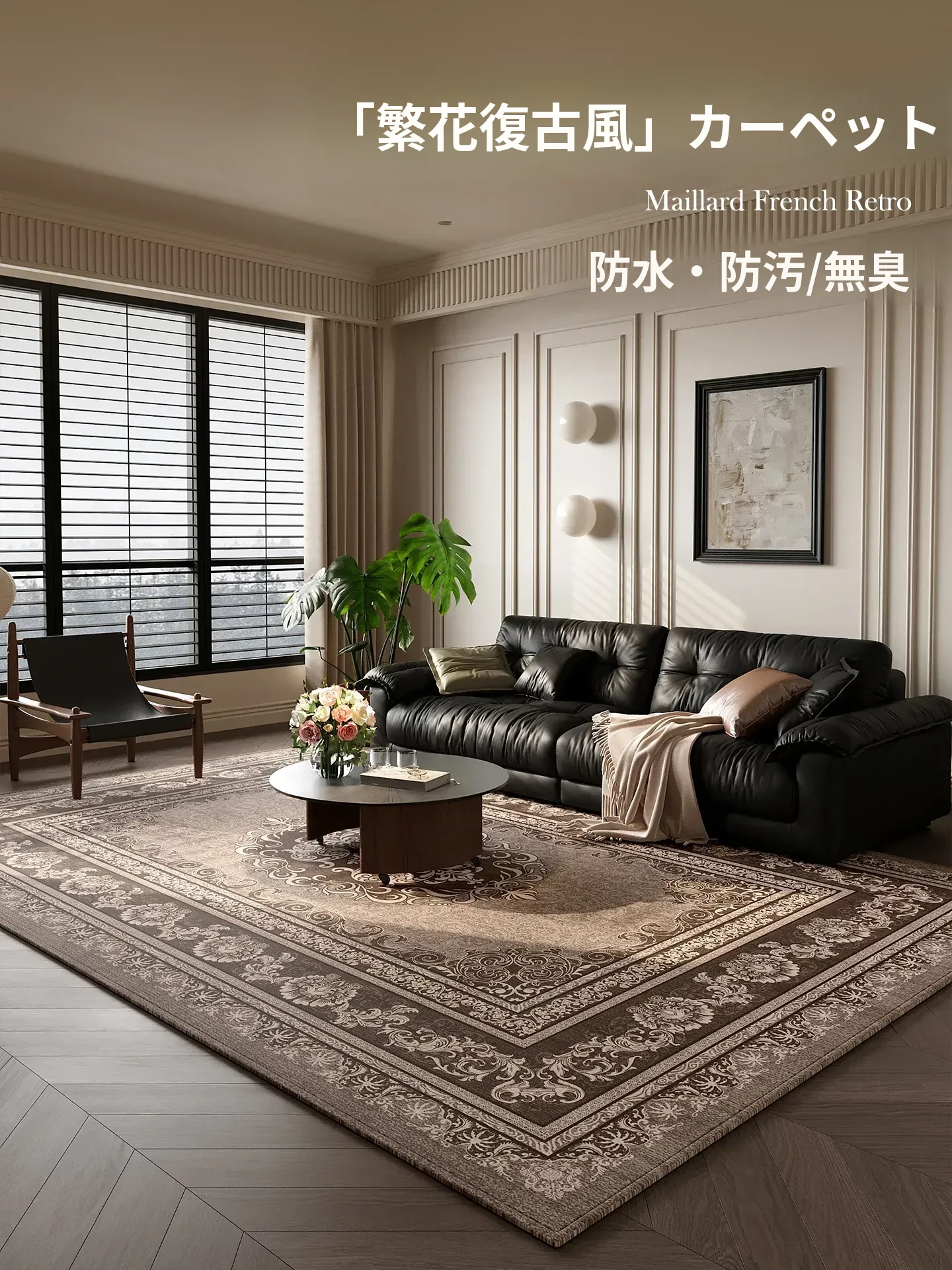 新作フレンチスタイルのカーペット、リビングにぴったり!レトロで高級感あふれるデザイン、中古感覚を楽しめる免洗・防水仕様。小さなお部屋の温かみある演出に最適なアイテムです!