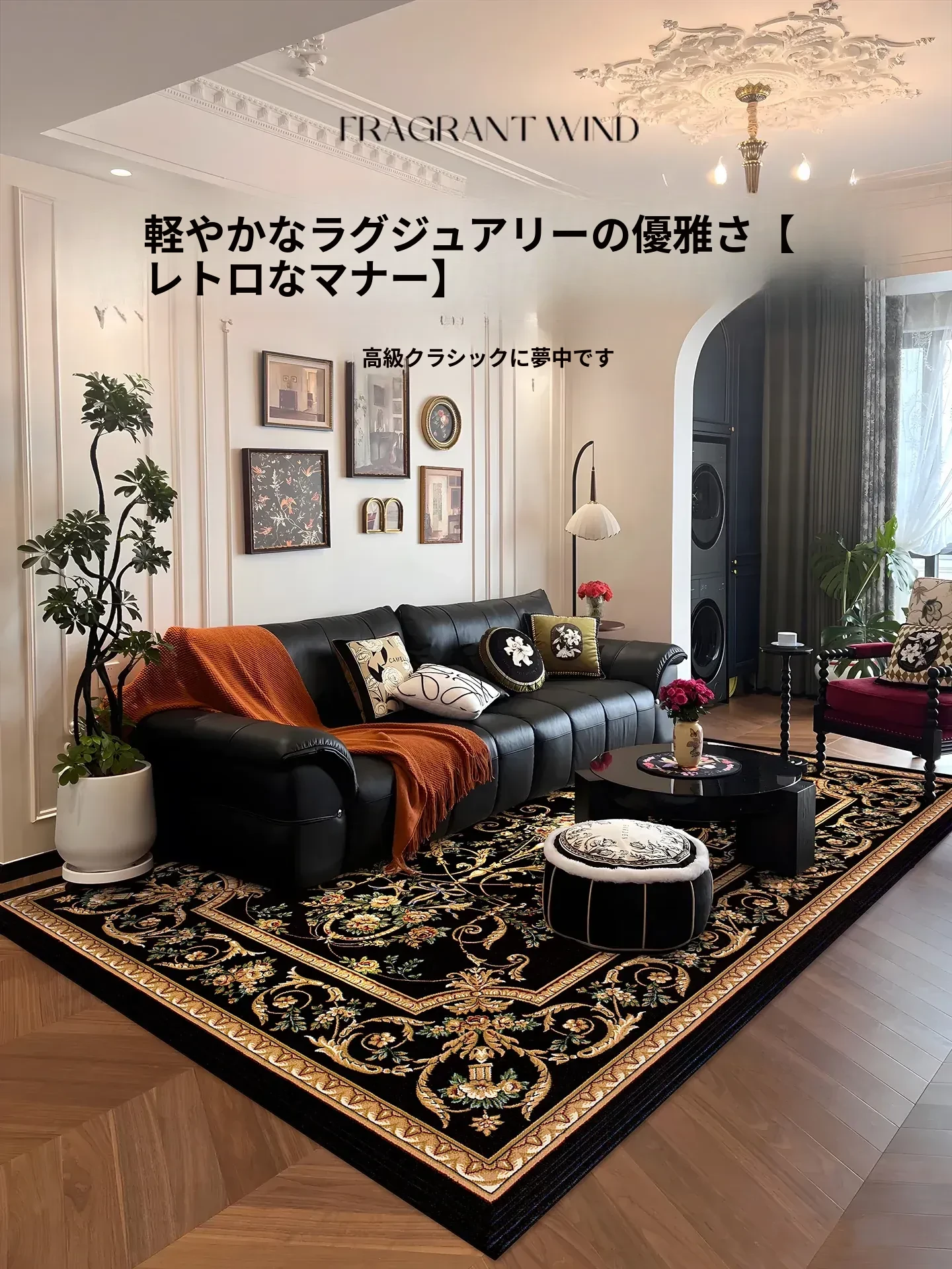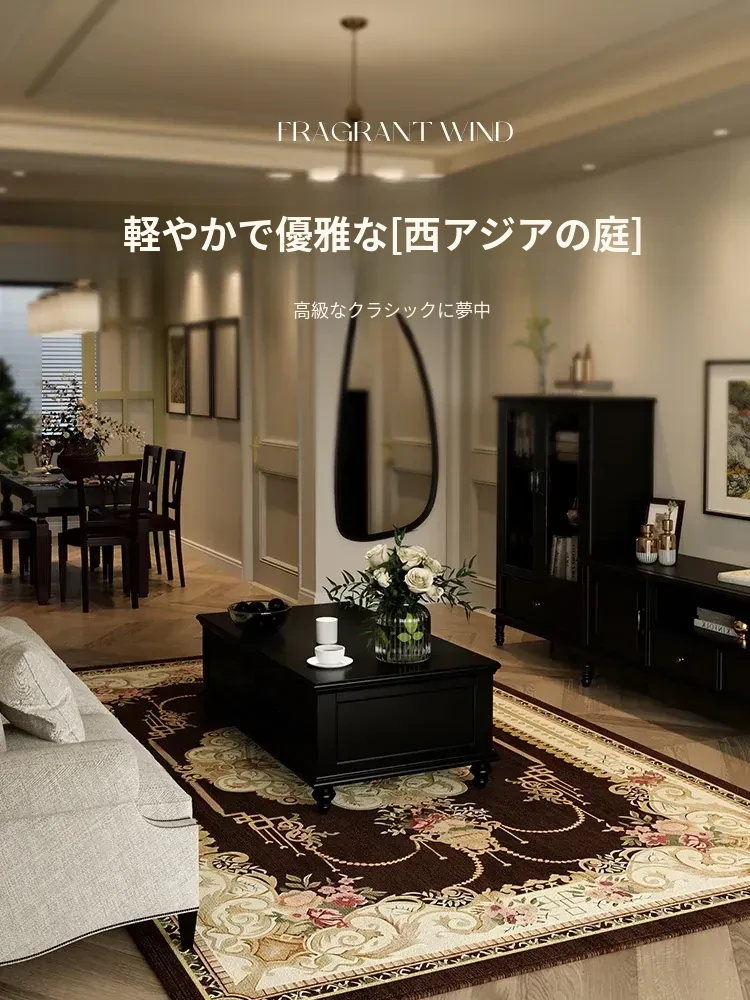 リビングルームにぴったりなレトロスタイルのカーペット!ソファやアメリカンティーテーブルにマッチする高級感あふれるデザイン。フランス風のスタイルでお手入れ簡単、欧風ベッドサイドに最適な防水機能付きの新作です。