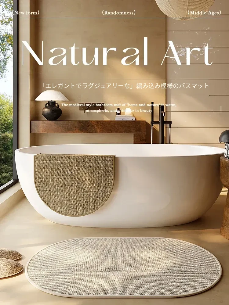 2026年新作!編み込み風リネンバスルーム吸水マット - 家庭用トイレの滑り止めドアマット、衛生的な足元マットで快適なバスタイムをサポート!