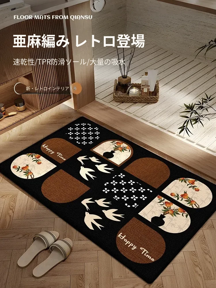新作!高級感あふれるヴィンテージスタイルの玄関マット - カスタマイズ可能で洗濯不要、汚れに強い!あなたの玄関をおしゃれに演出し、訪れる人を魅了します。