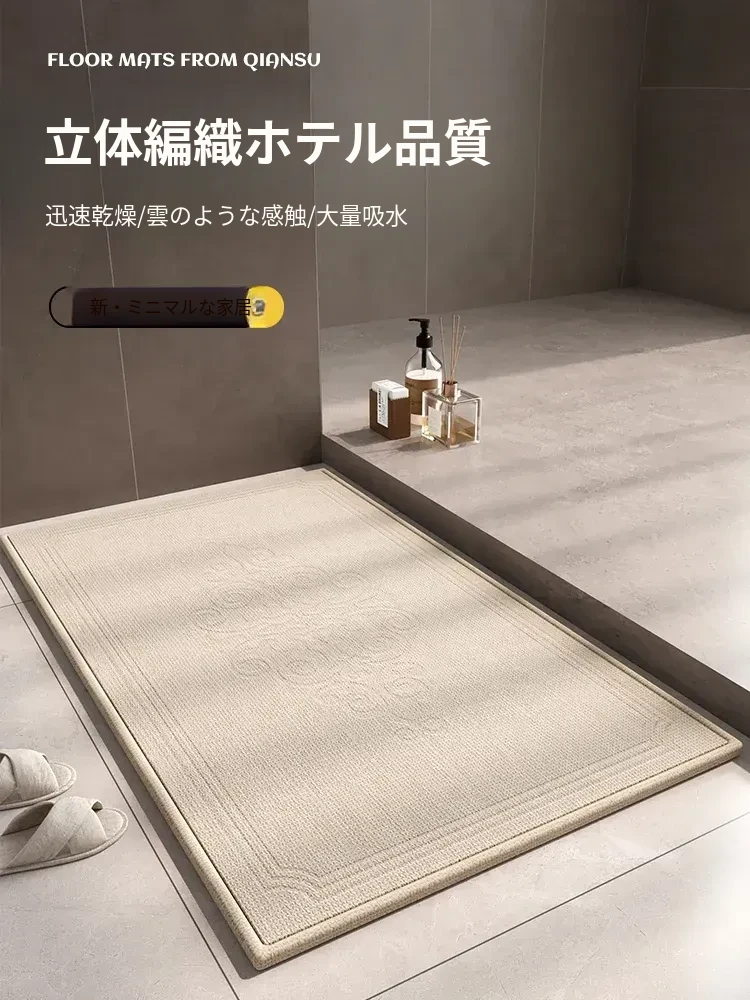 吸水性抜群!滑り止め付きのバスルーム用シリカゲルマット - トイレや洗面所の玄関にぴったりな速乾性マット!