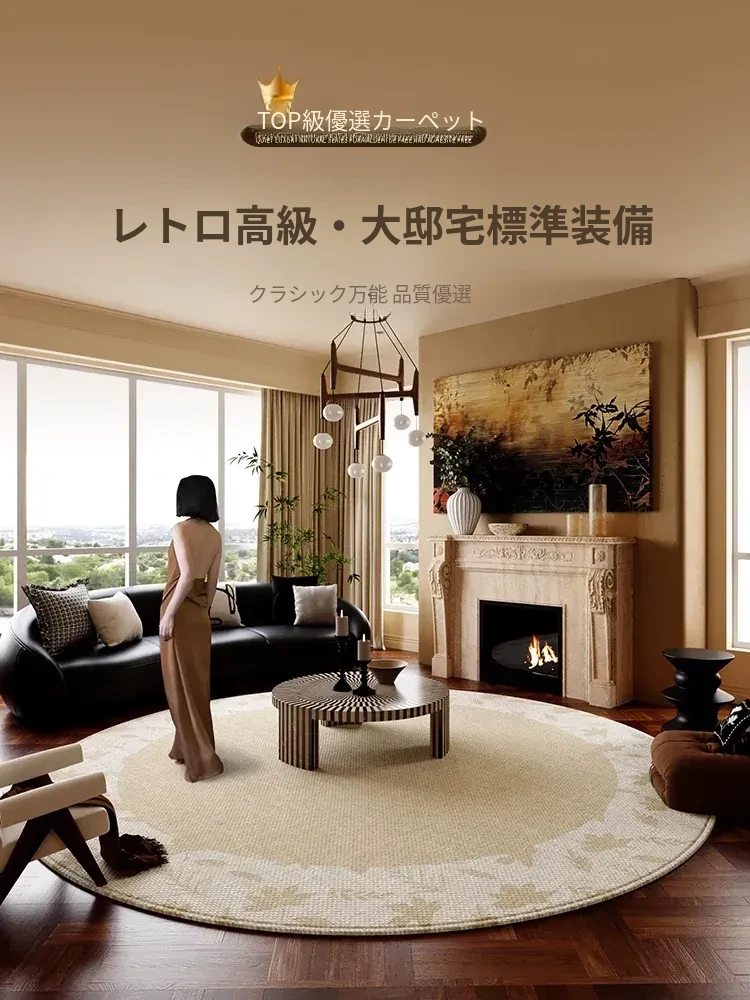 新作!防水・免洗のフレンチスタイルラウンドカーペット|リビング・ベッドルームに最適な高級ソファマット|ヴィンテージデザインでおしゃれなテーブルマット!