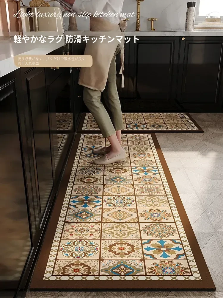 キッチン用防油防滑マット 新作 吸水性抜群・お手入れ簡単・耐汚れ・高級防水マット 家庭用に最適!