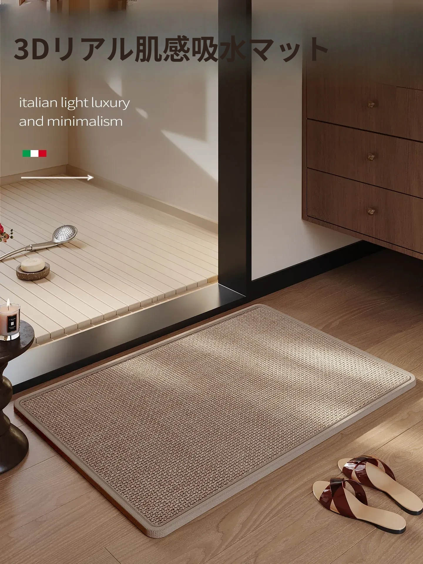 高級バスルームマット - 吸水・滑り止め機能付き!トイレやバスタブの入口に最適、洗面台にもぴったり。汚れに強く、速乾性でいつでも清潔をキープ!